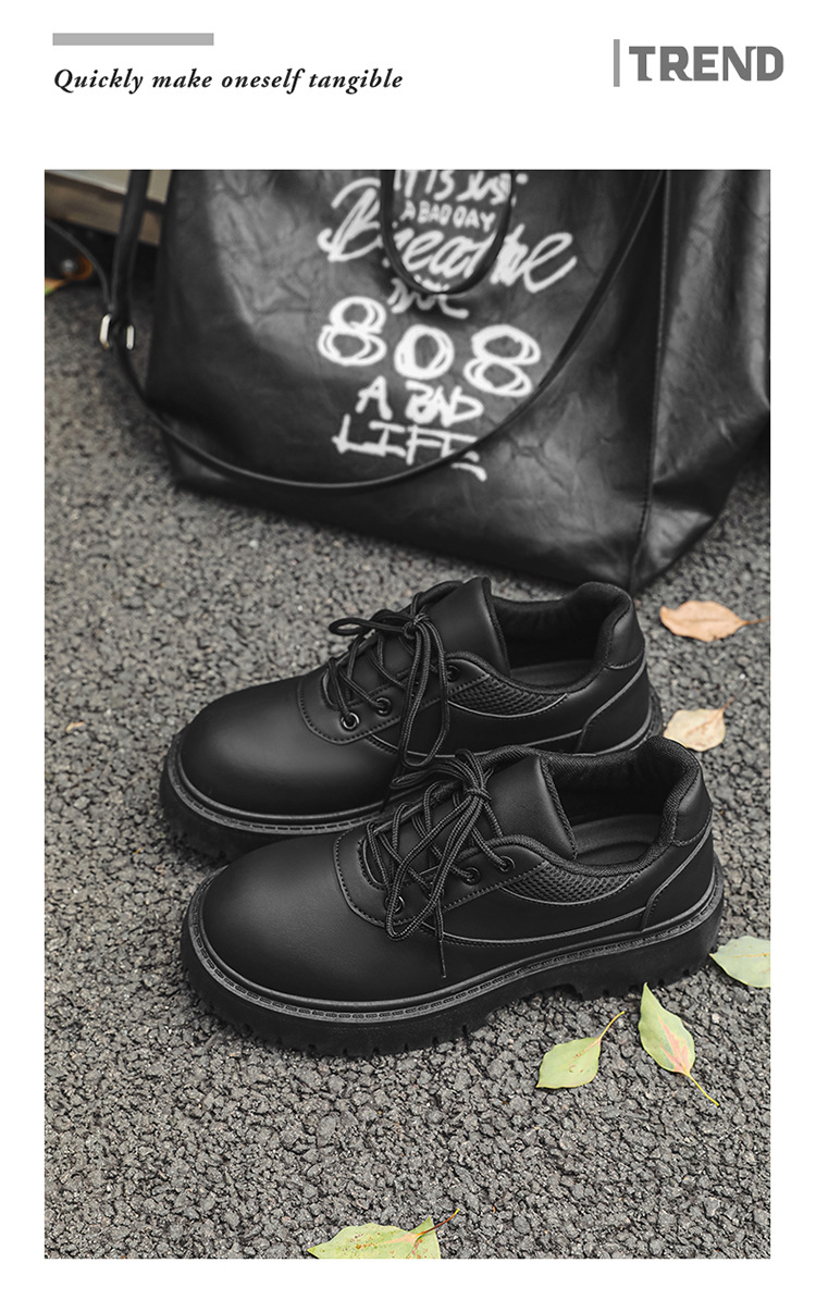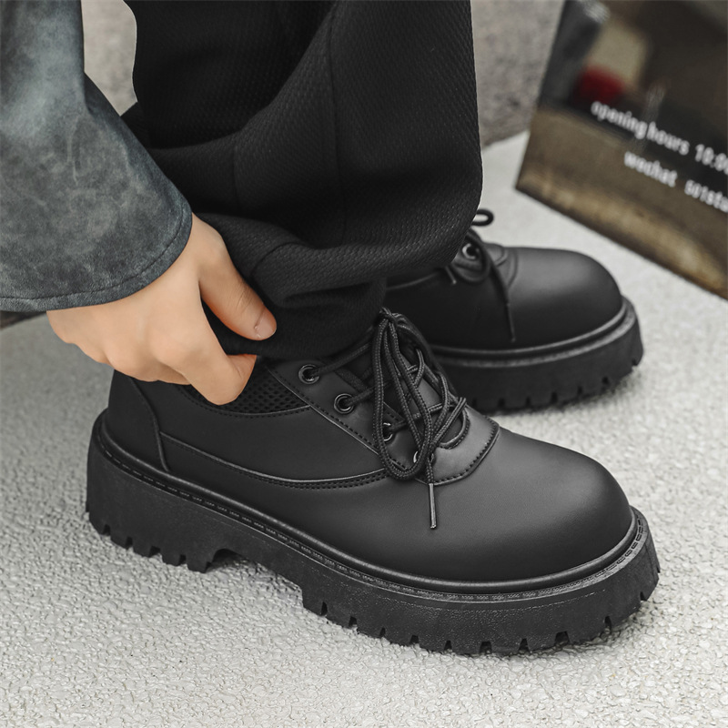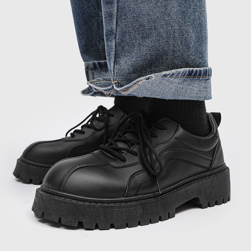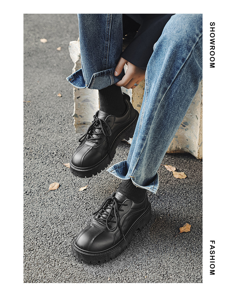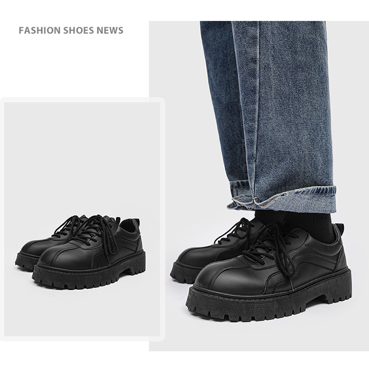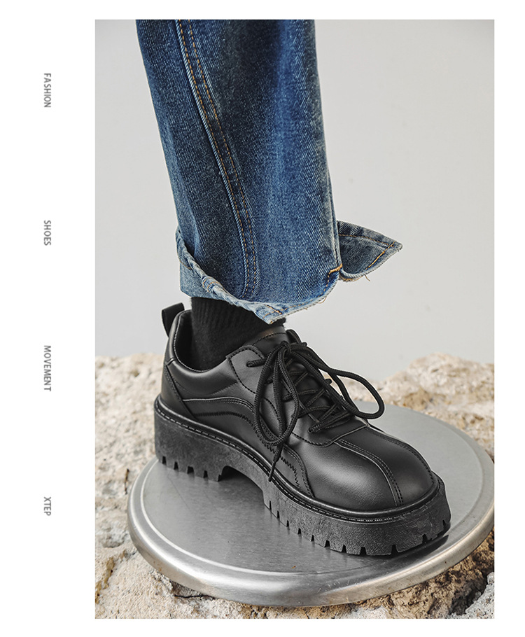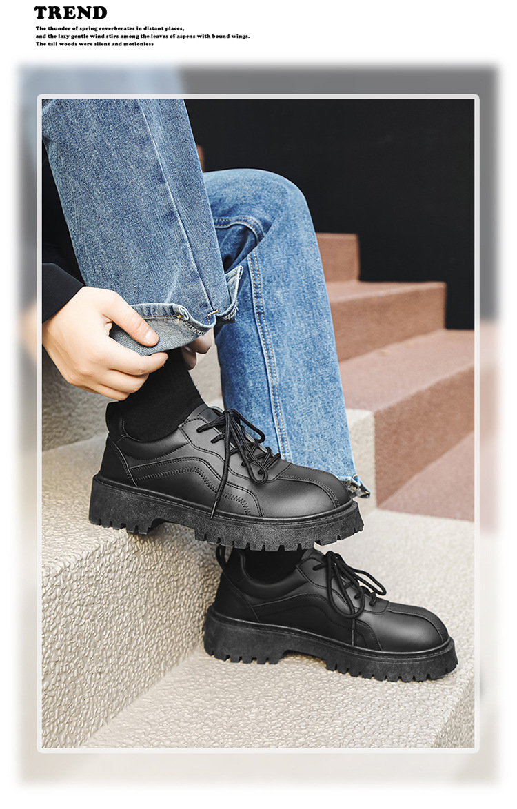 남자 신발 가을 영국 캐주얼 비즈니스 큰 발가락 가죽 신발 로우 탑 두꺼운 바닥 레트로 흑백 색상 블록 패션 툴링 트렌디 한 신발