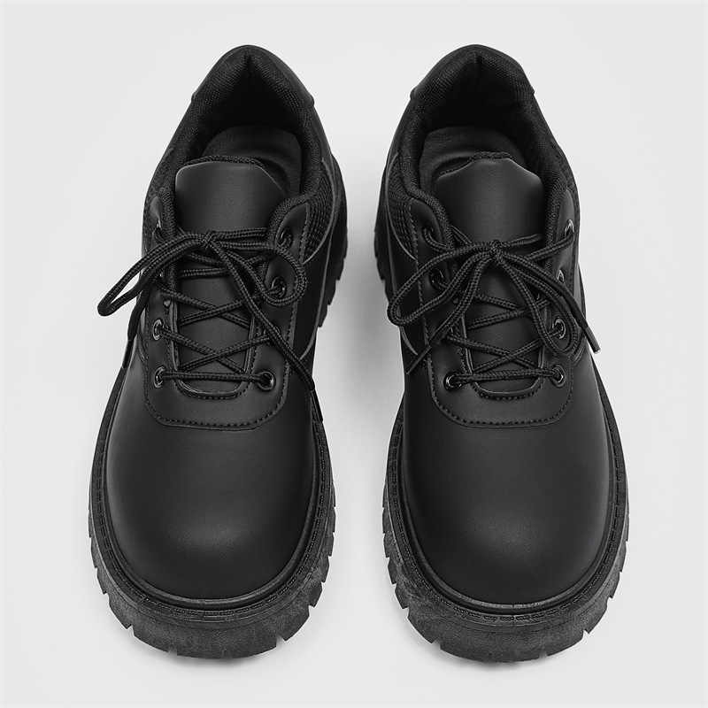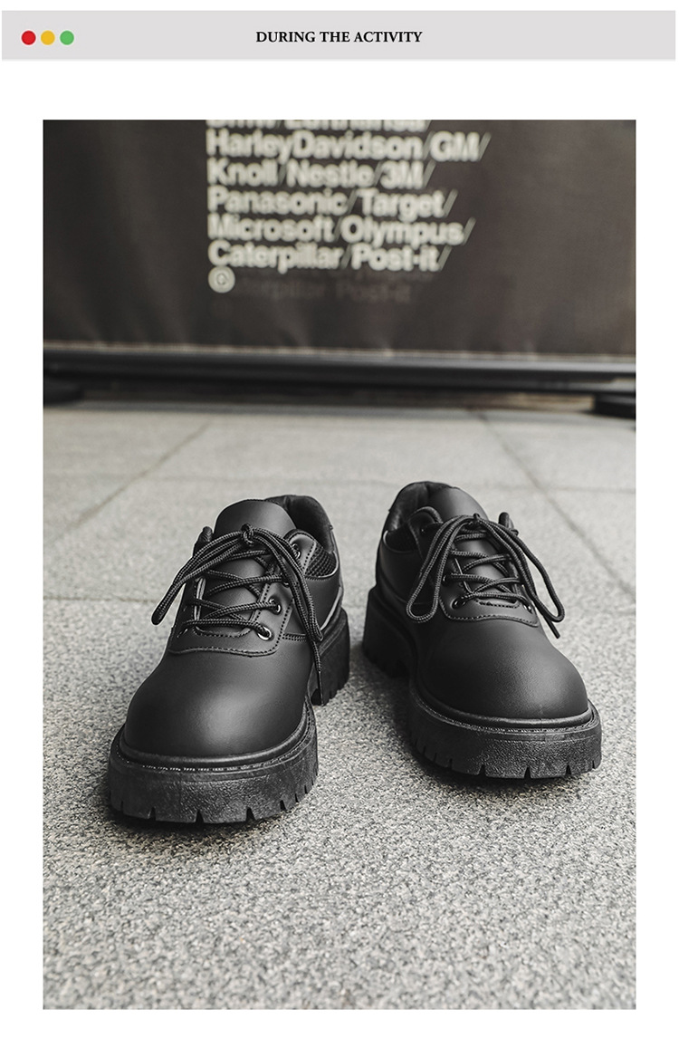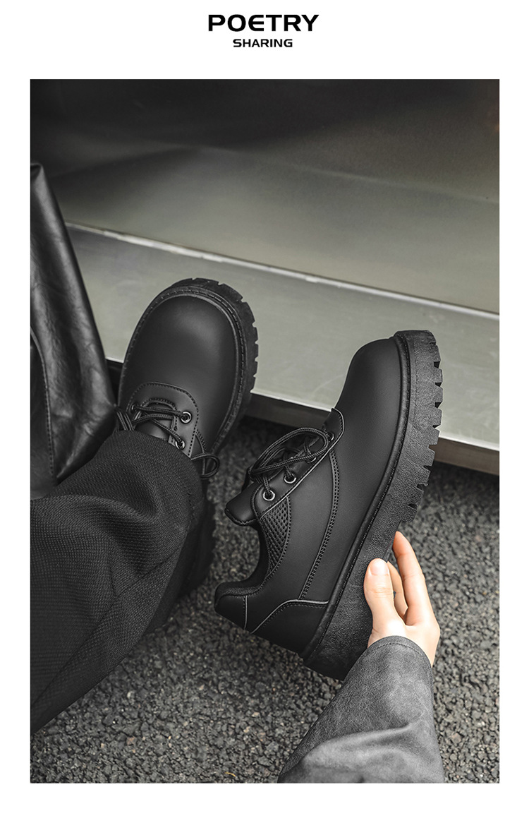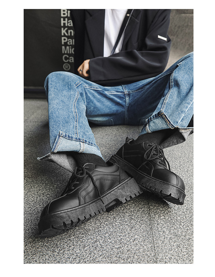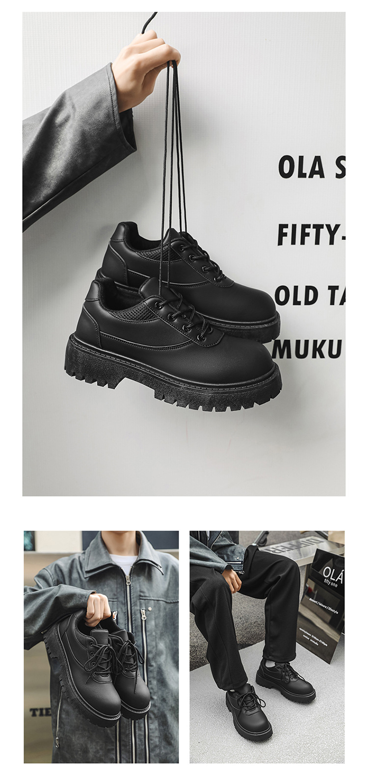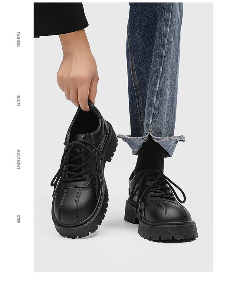남자 신발 가을 영국 캐주얼 비즈니스 큰 발가락 가죽 신발 로우 탑 두꺼운 바닥 레트로 흑백 색상 블록 패션 툴링 트렌디 한 신발