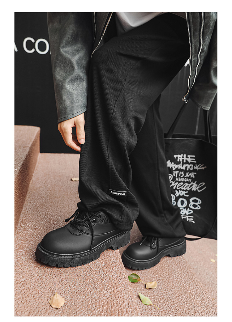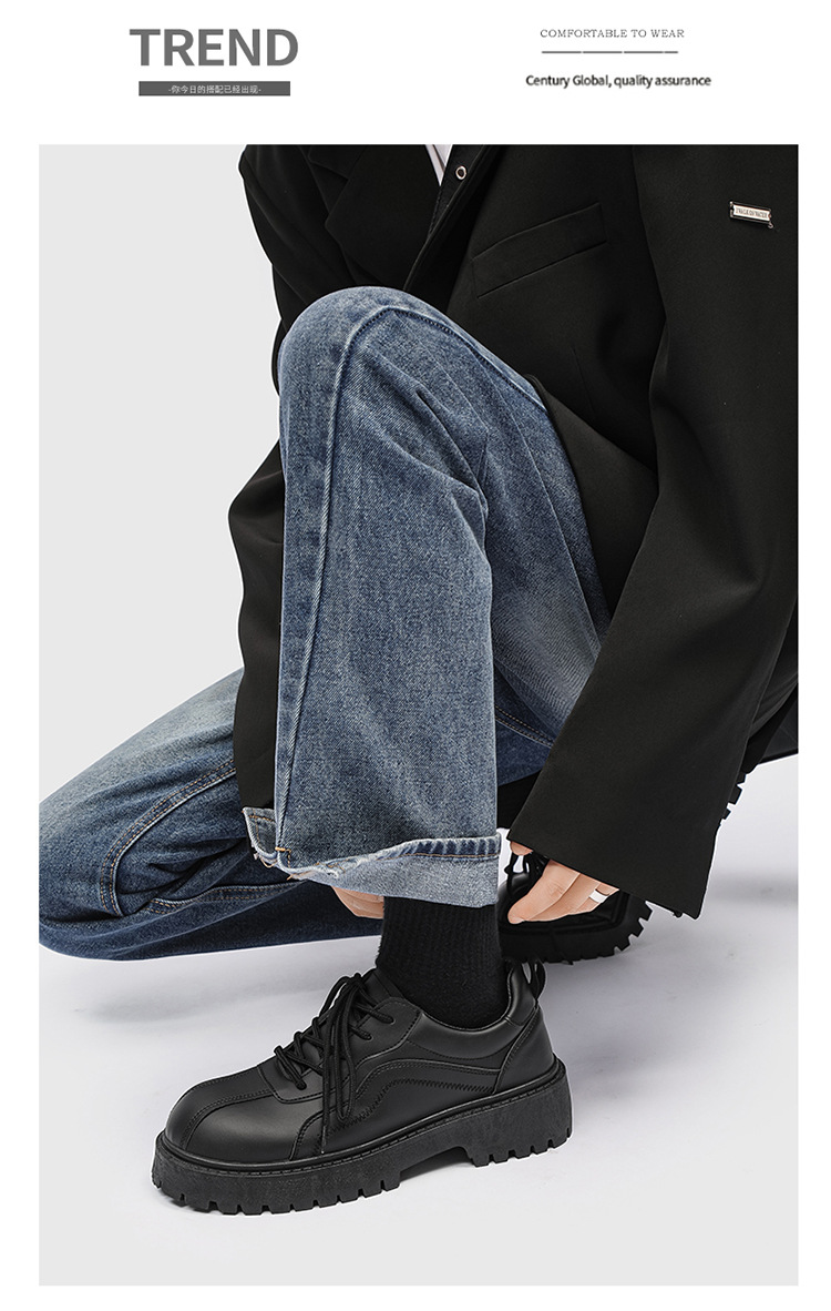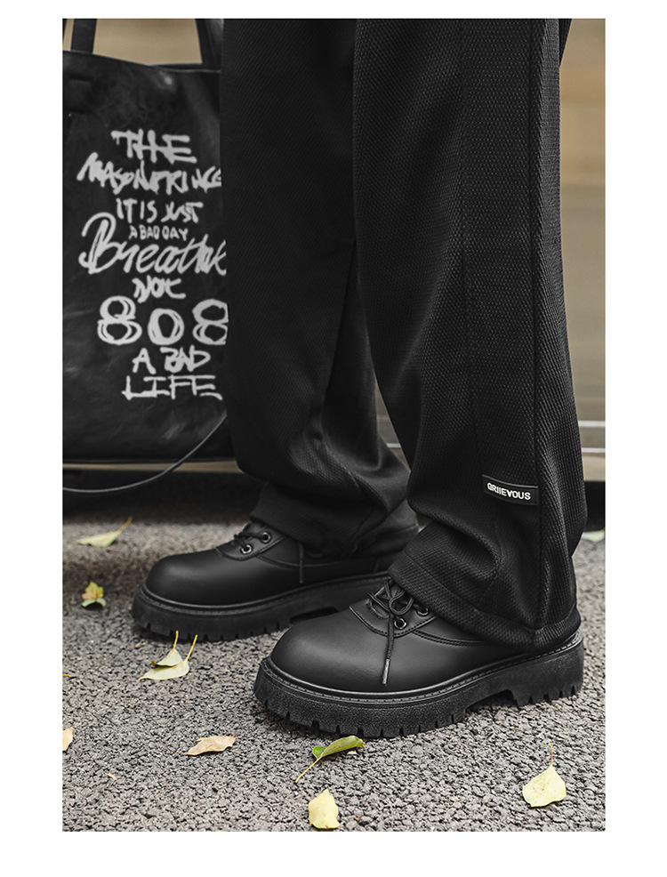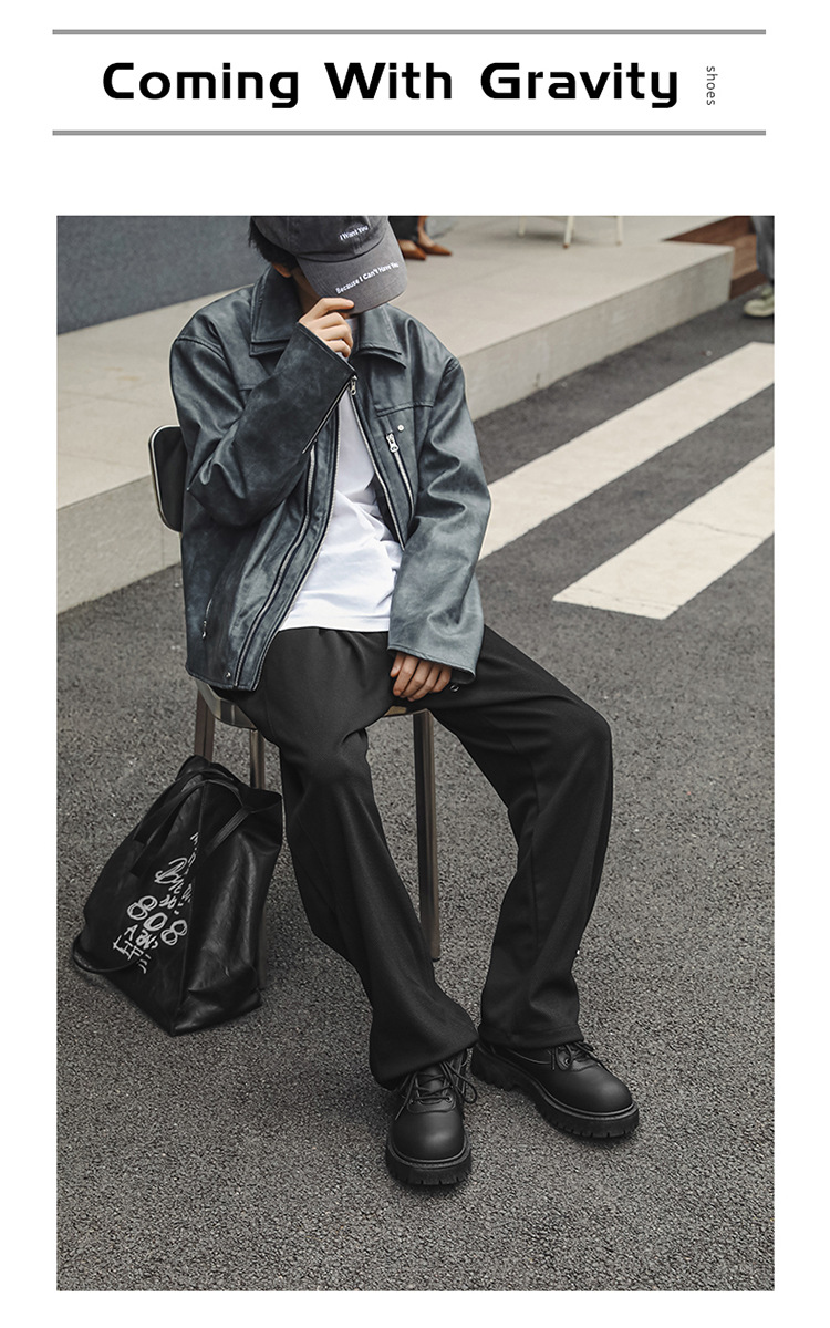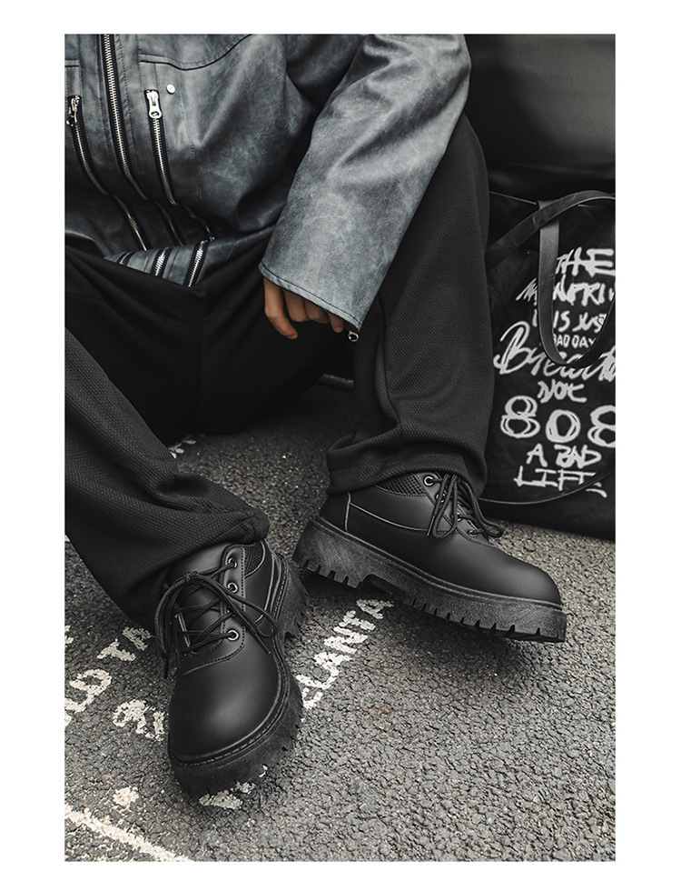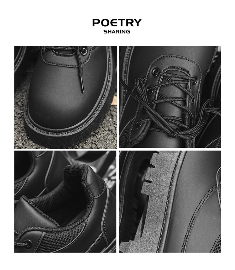 남자 신발 가을 영국 캐주얼 비즈니스 큰 발가락 가죽 신발 로우 탑 두꺼운 바닥 레트로 흑백 색상 블록 패션 툴링 트렌디 한 신발