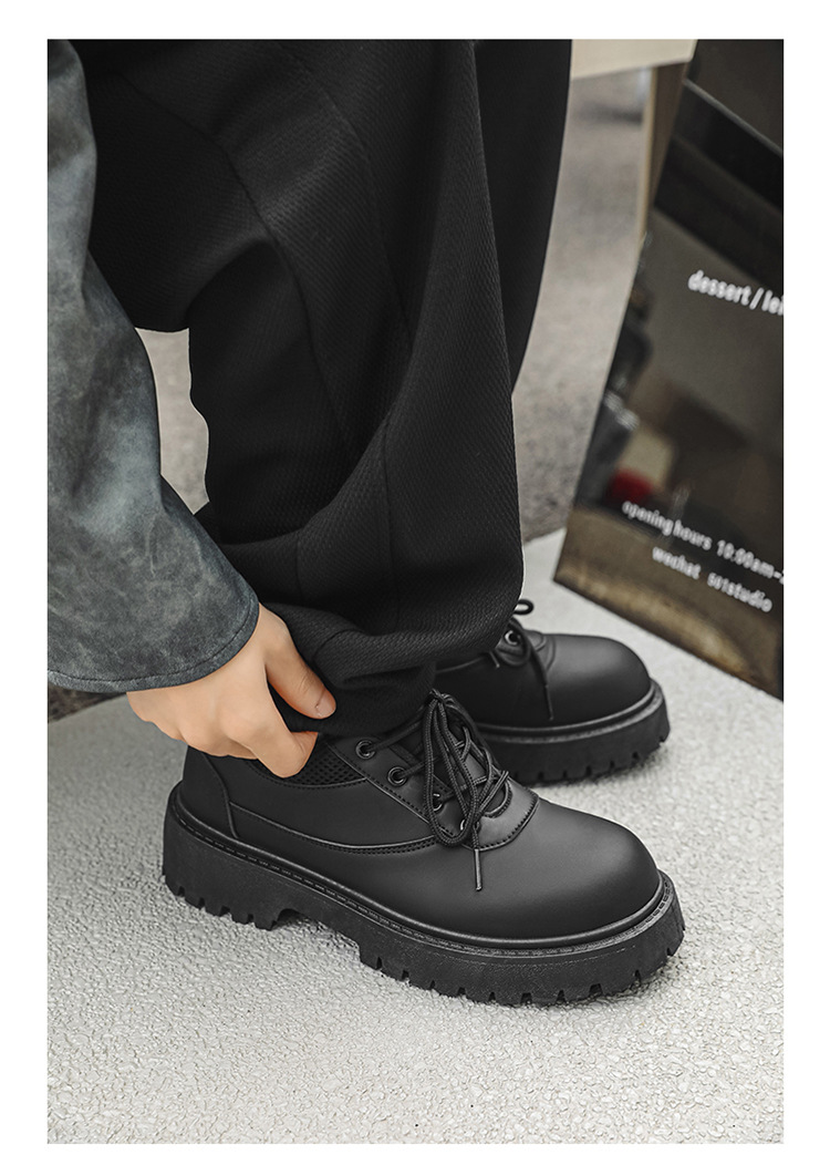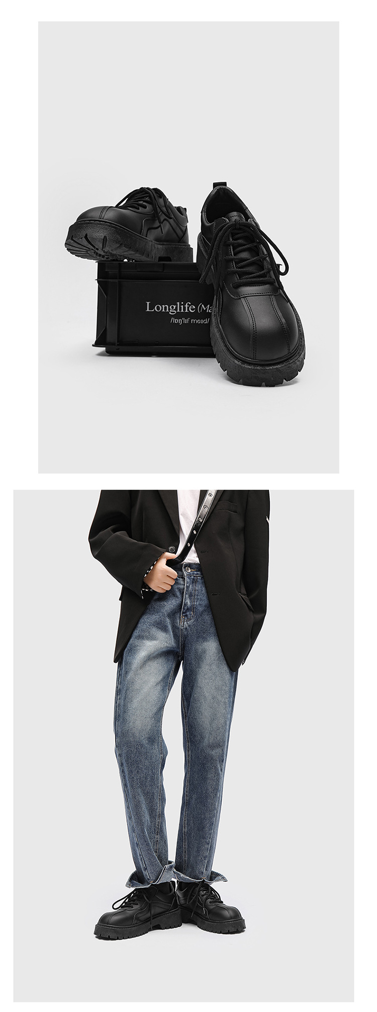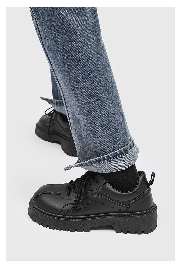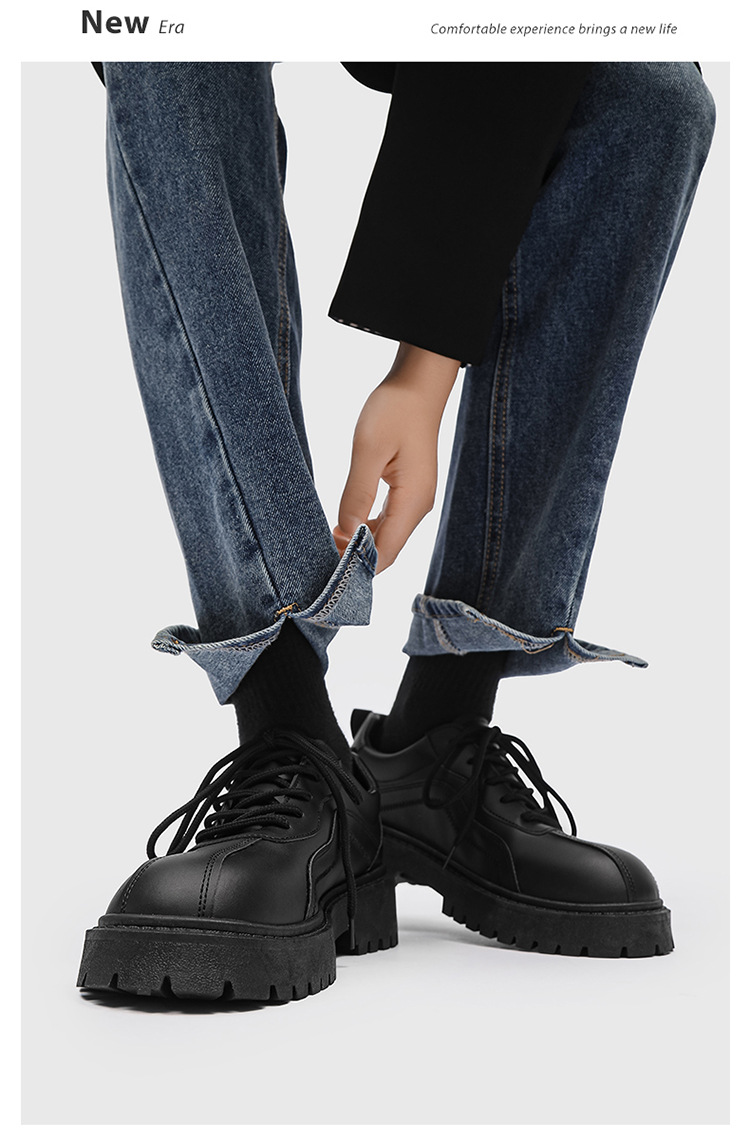 남자 신발 가을 영국 캐주얼 비즈니스 큰 발가락 가죽 신발 로우 탑 두꺼운 바닥 레트로 흑백 색상 블록 패션 툴링 트렌디 한 신발스토어 가기