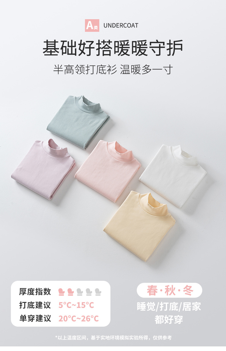 어린이 세미 하이 칼라 바닥 셔츠 소녀 두꺼운 따뜻한 긴 소매 속옷 큰 어린이를위한 아기 샌딩 가을 옷 도매스토어 가기