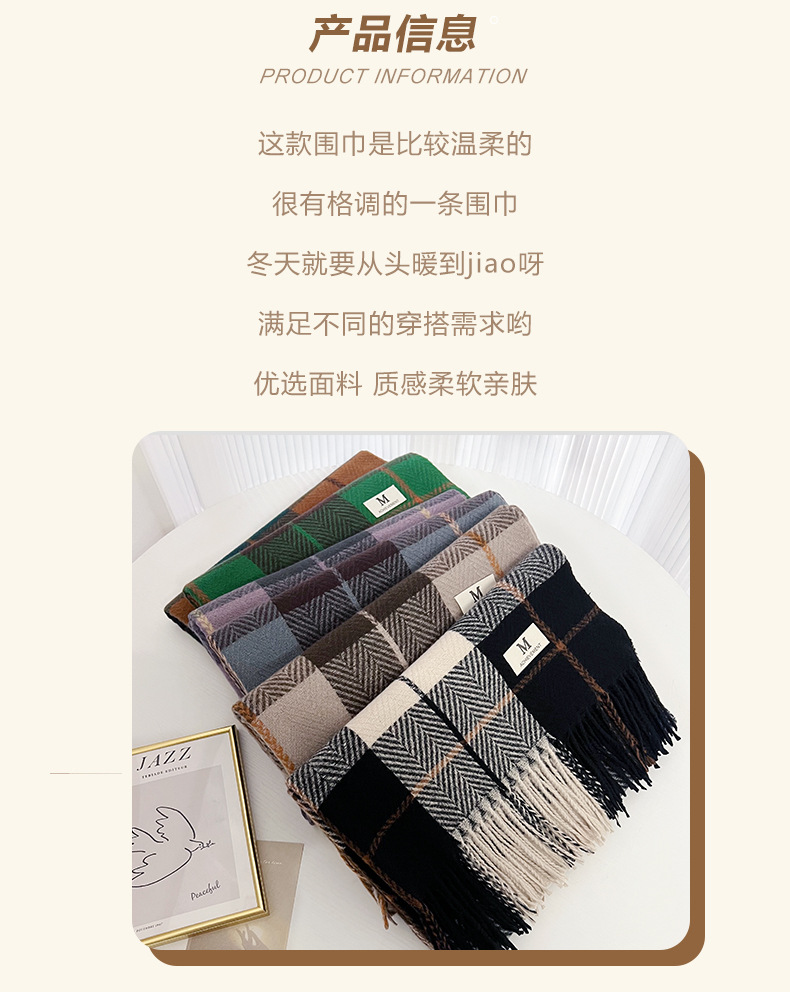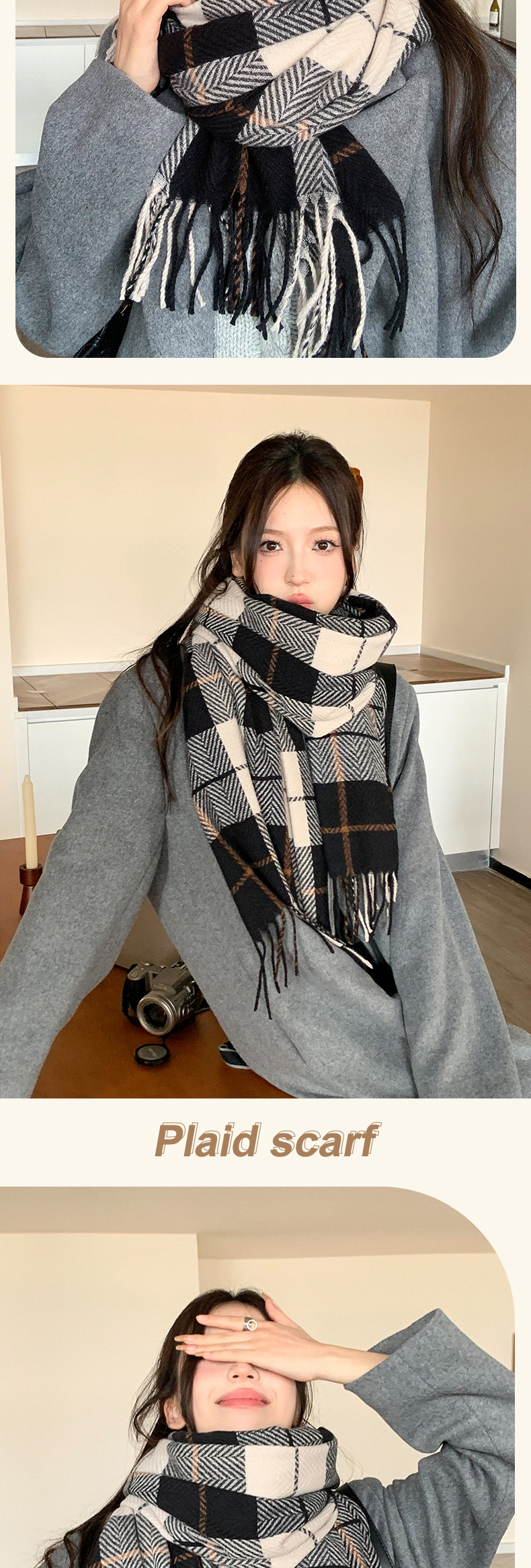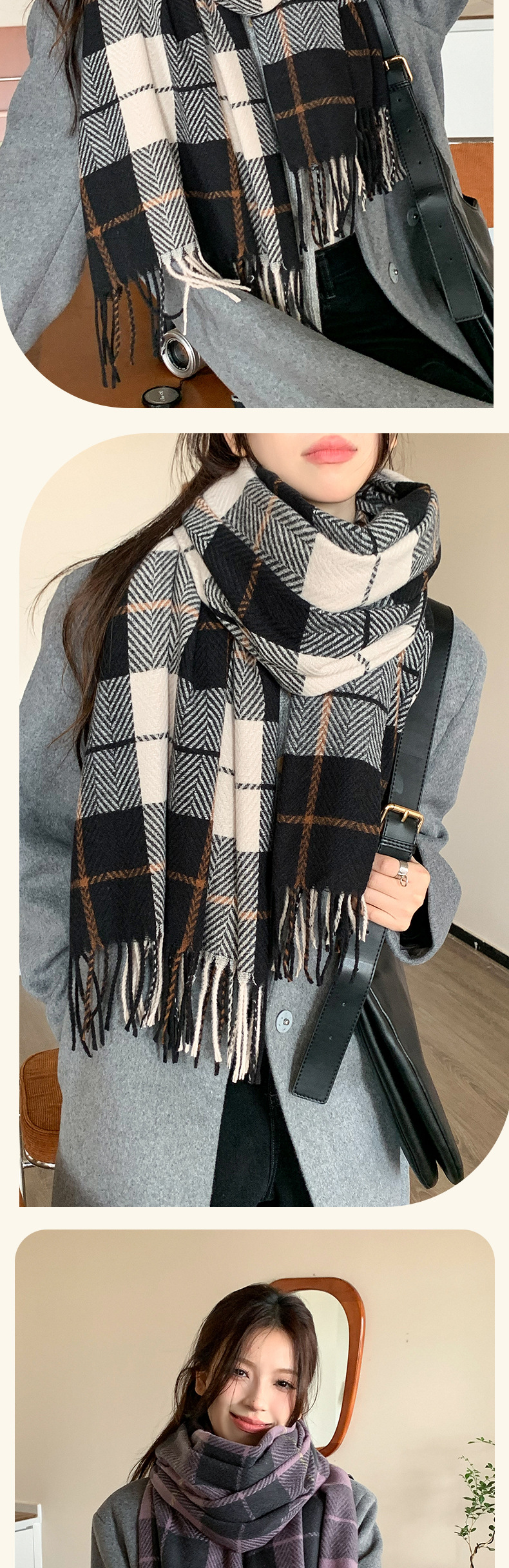 2025년 인기 겨울 클래식 체크무늬 여성용 스카프, 캐주얼하고 다재다능하며 트렌디한 숄, 따뜻한 한국 스타일 스카프 도매스토어 가기