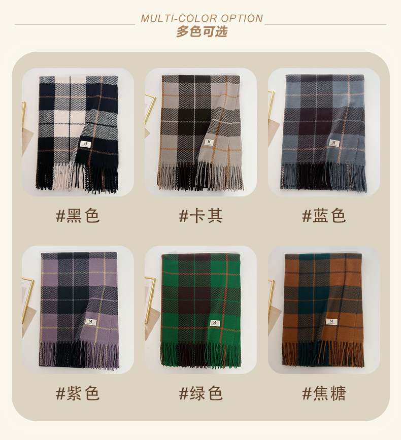 2025년 인기 겨울 클래식 체크무늬 여성용 스카프, 캐주얼하고 다재다능하며 트렌디한 숄, 따뜻한 한국 스타일 스카프 도매