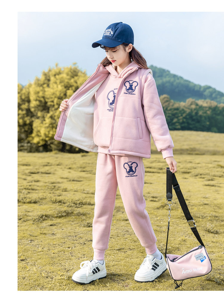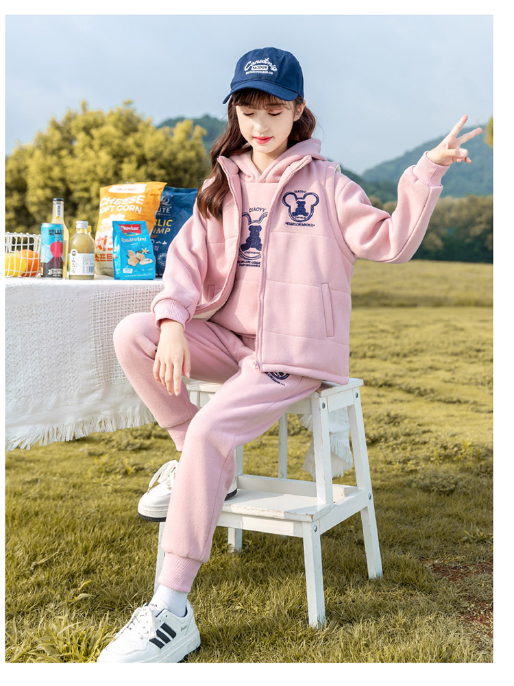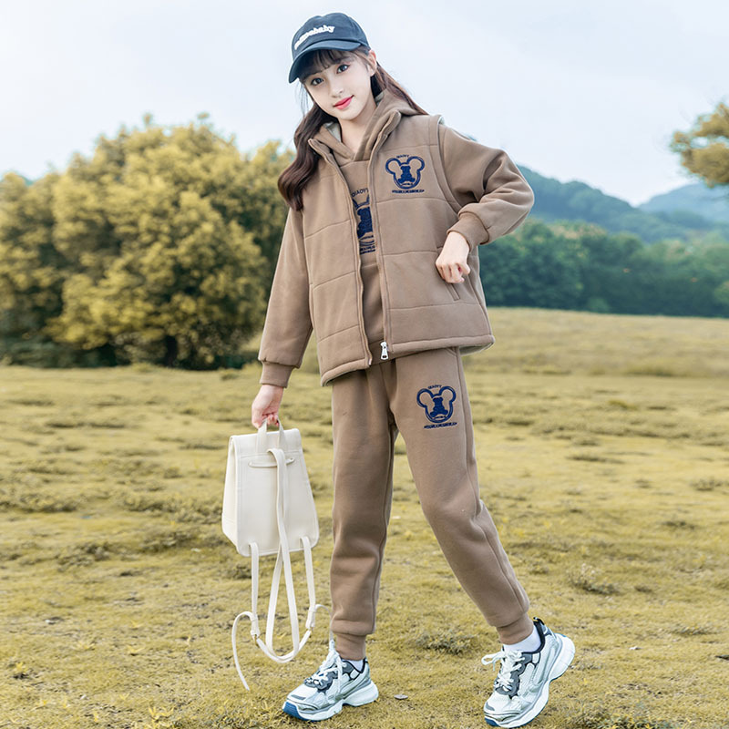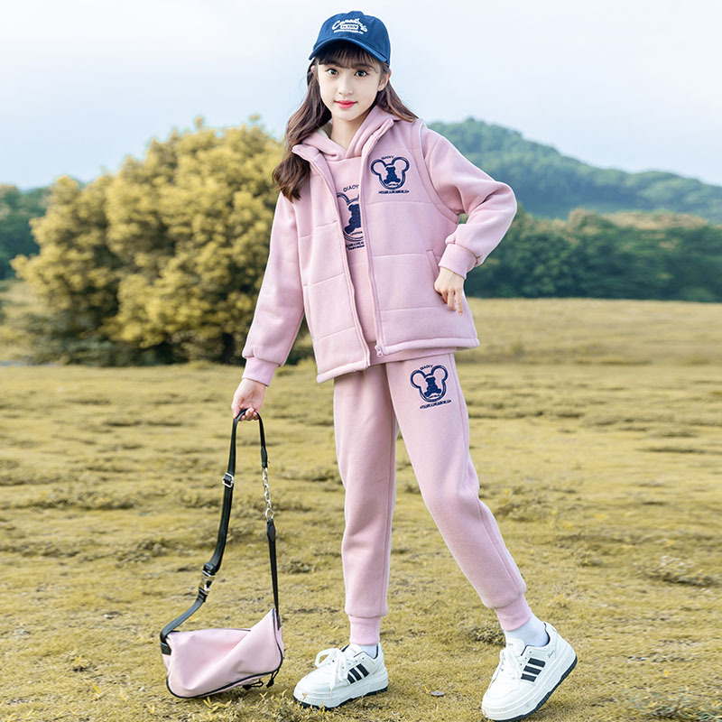 여아 가을 겨울 세트 2025 신상 스타일리시 여아 겨울옷 플러스 벨벳 두꺼운 어린이 겨울 조끼 3종 세트