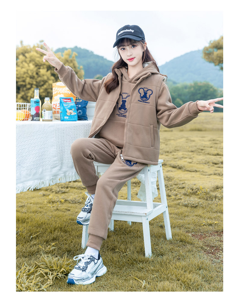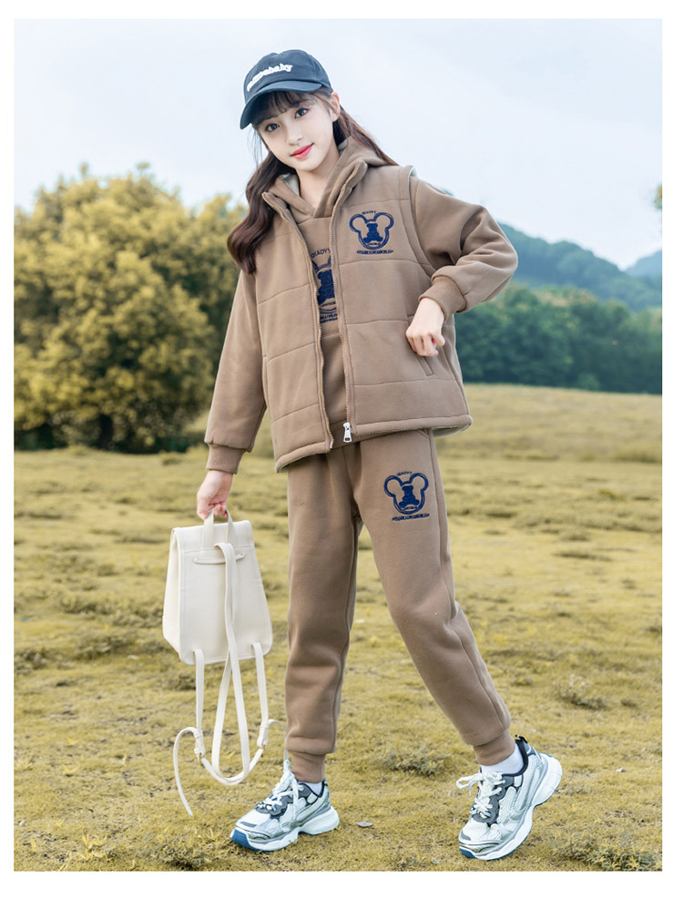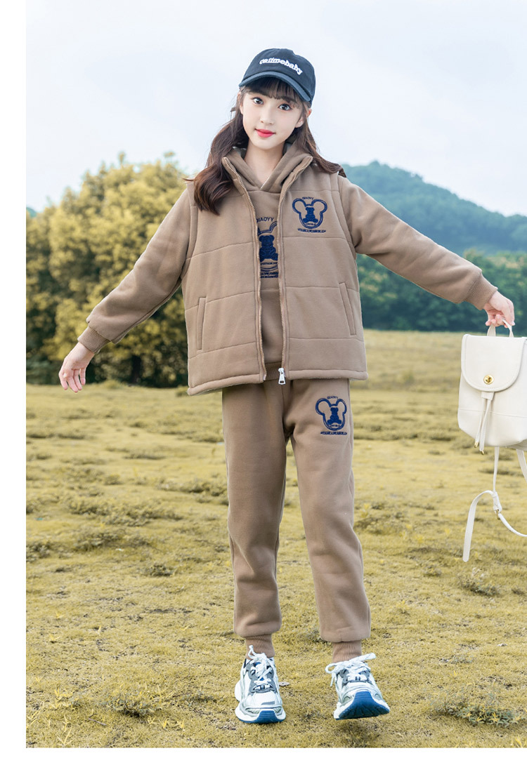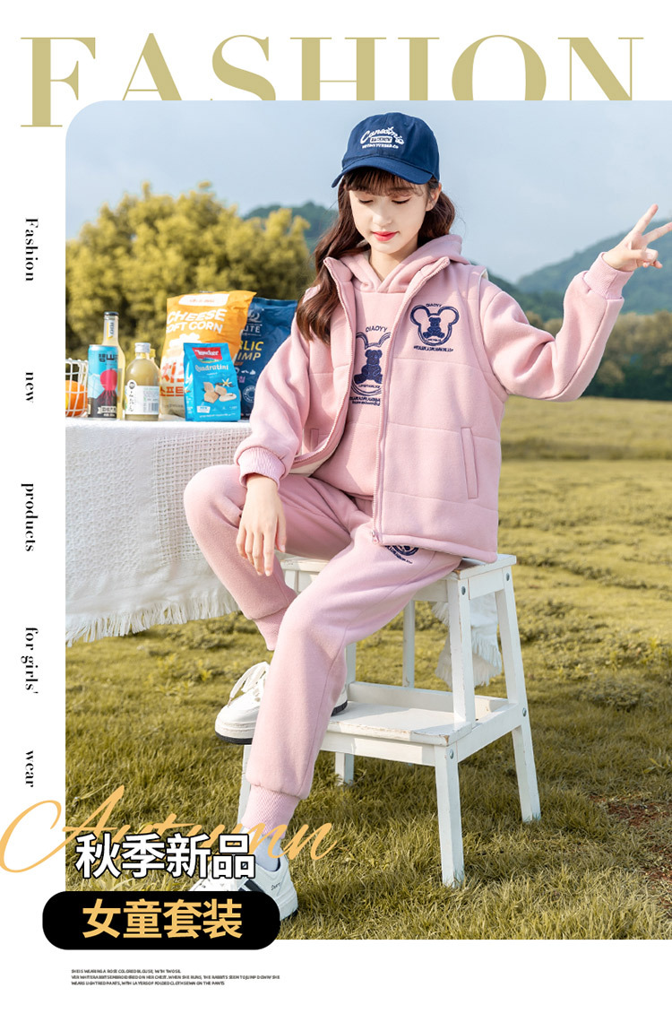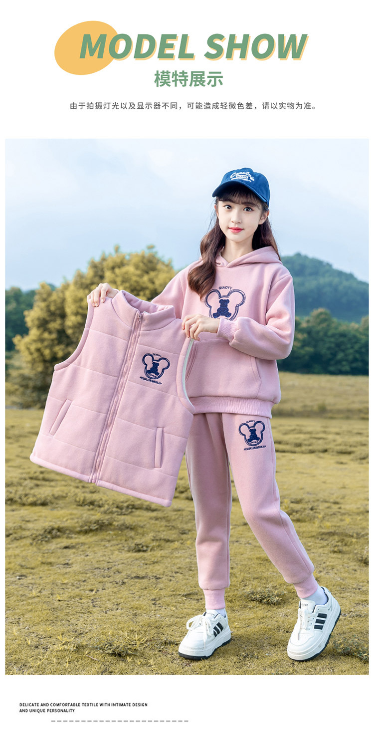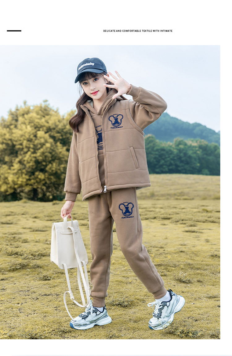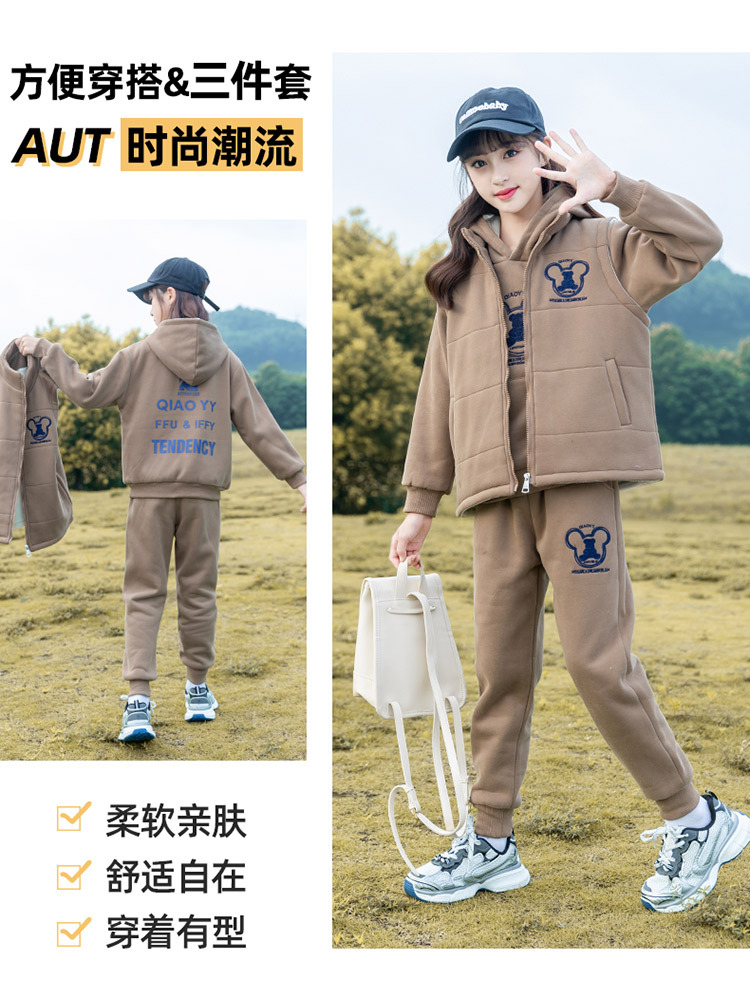 여아 가을 겨울 세트 2025 신상 스타일리시 여아 겨울옷 플러스 벨벳 두꺼운 어린이 겨울 조끼 3종 세트스토어 가기