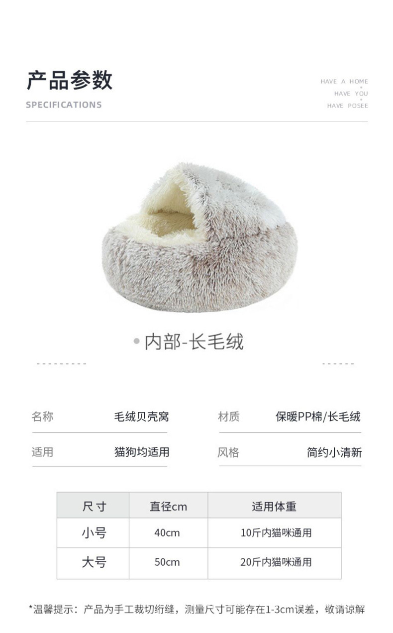 고양이 둥지 가을과 겨울 쉘 둥지 따뜻한 애완 동물 새끼 고양이 두꺼운 사계절 유니버설 개 사육장 겨울 용품 고양이 침대