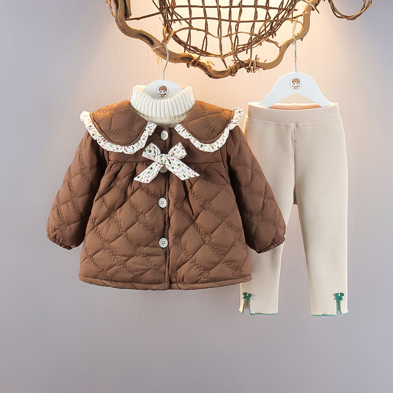 겨울 아기 소녀의 면 세트 외국인 아동복 소녀의 기모 투피스 겨울 복장스토어 가기
