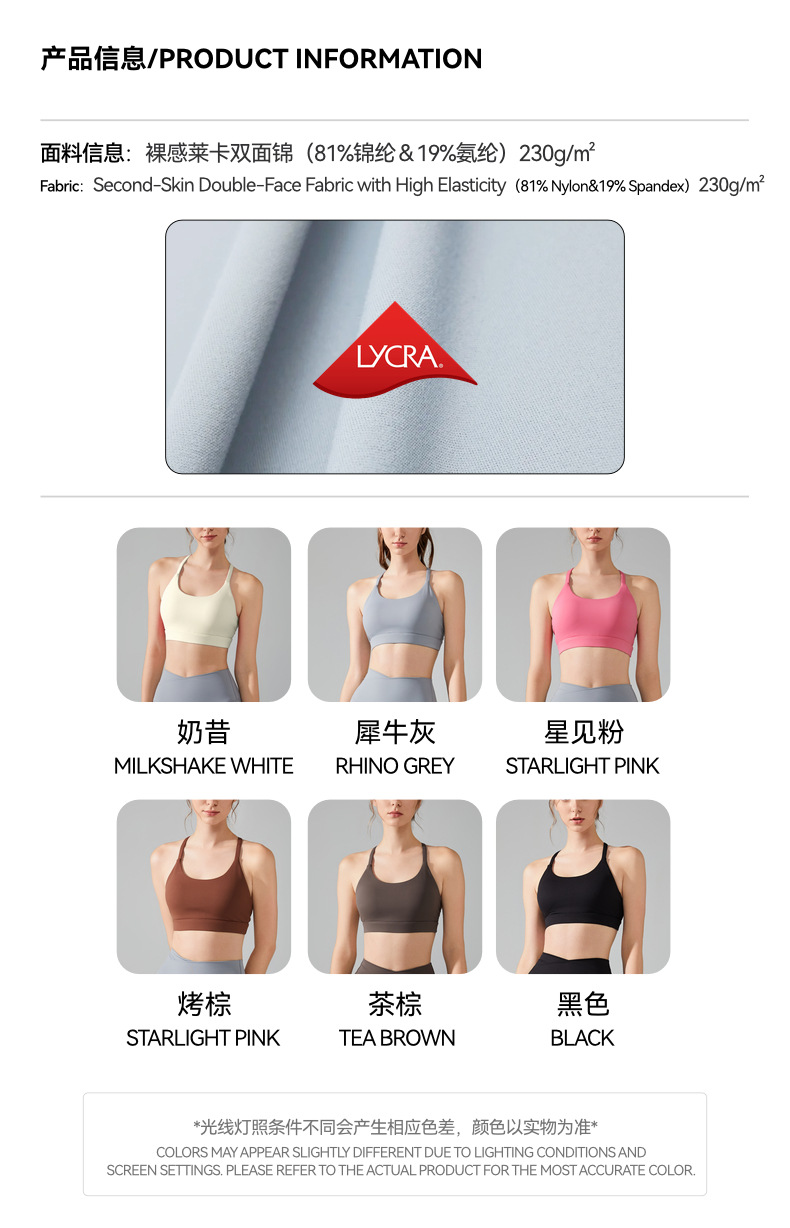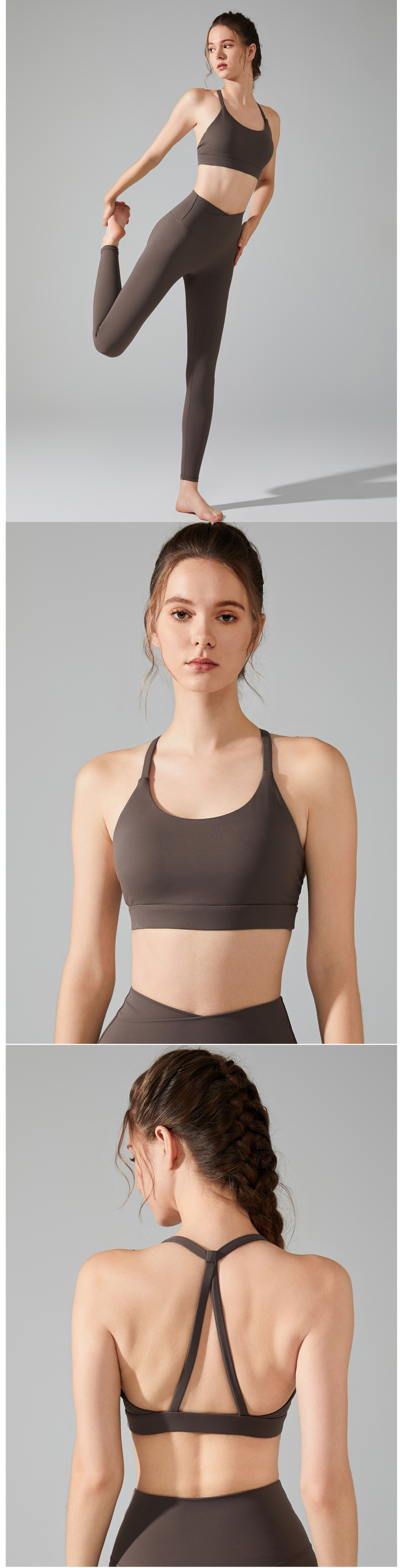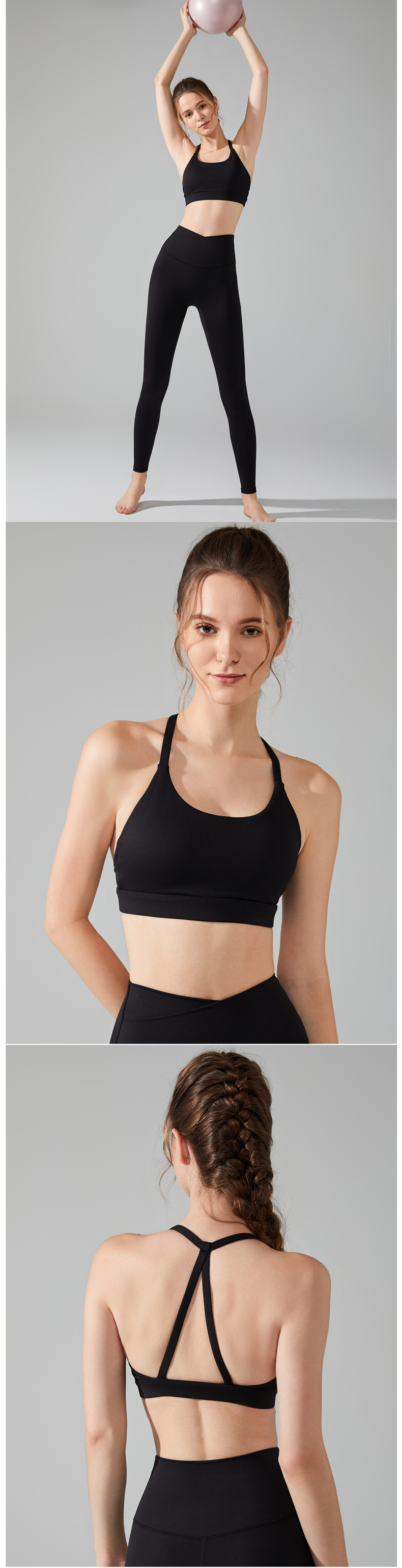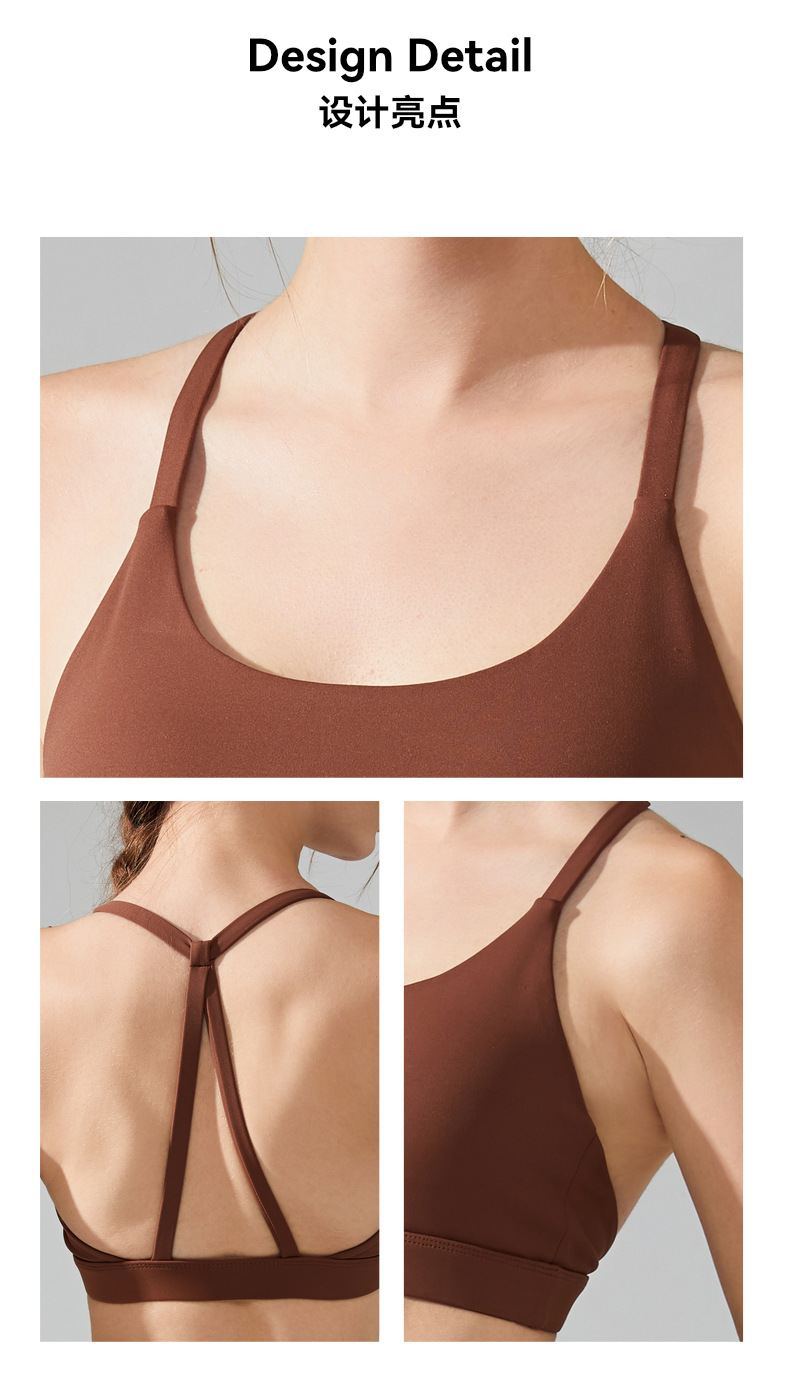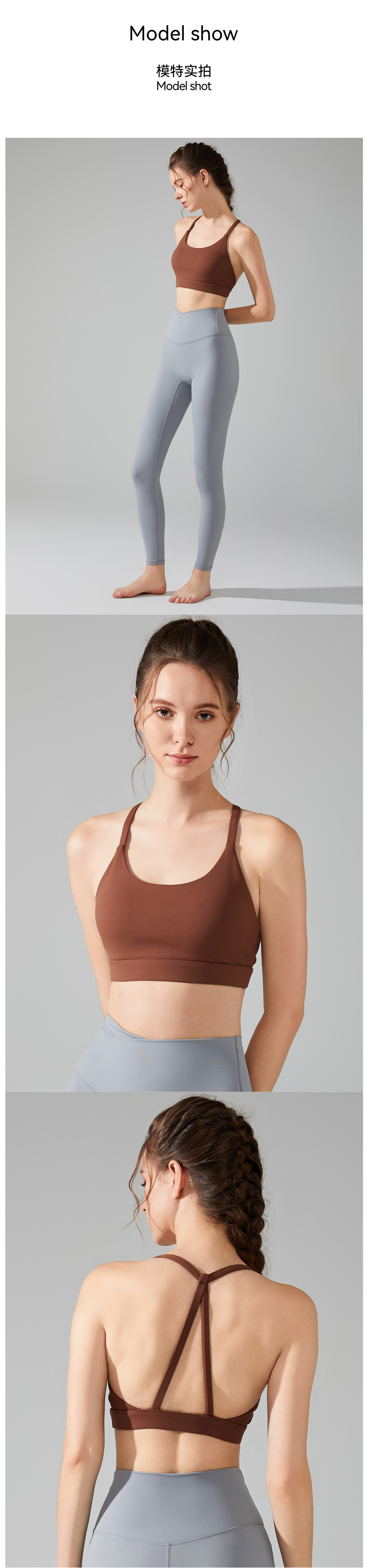 크로스보더 라이크라 스포츠 브라 누드 느낌 요가 브라 노와이어 얇은 스트랩 피트니스 탑 홀터넥 아름다운 등 디자인 가슴 패드