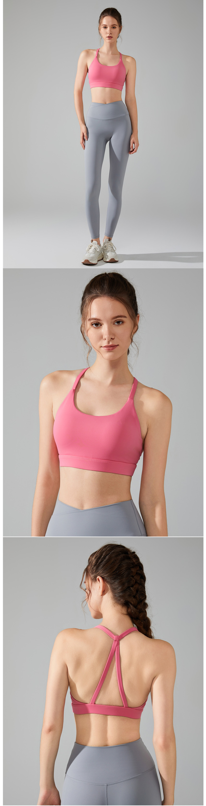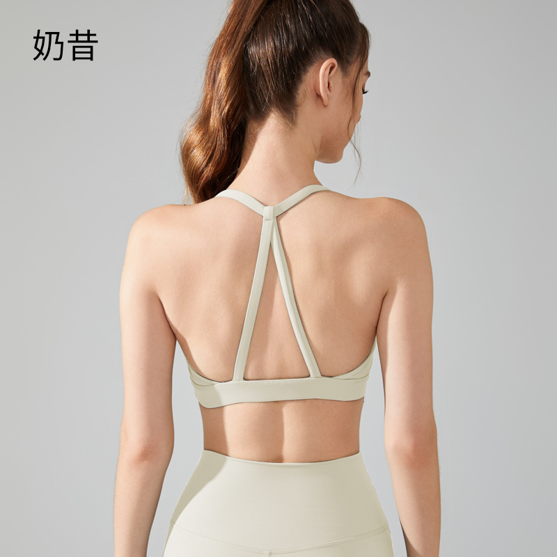 크로스보더 라이크라 스포츠 브라 누드 느낌 요가 브라 노와이어 얇은 스트랩 피트니스 탑 홀터넥 아름다운 등 디자인 가슴 패드스토어 가기