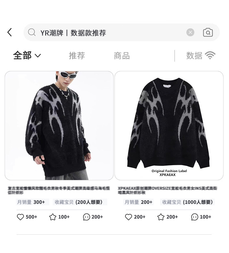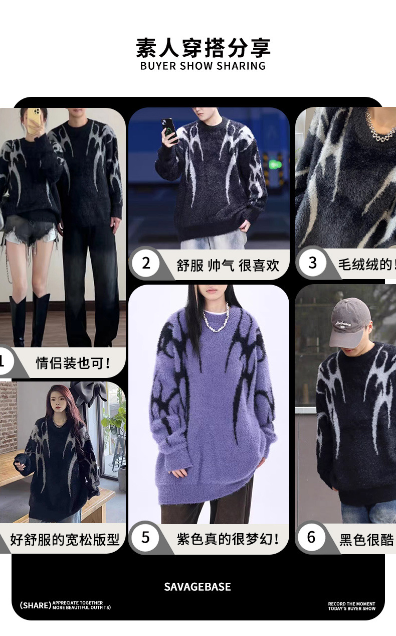 야인베이스 남성복 오리지널 트렌디 브랜드 다크 가시 날개 자카드 가을 겨울 부드러운 모조 밍크 니트 셔츠 쿨스토어 가기