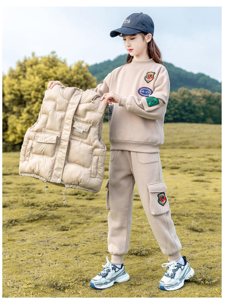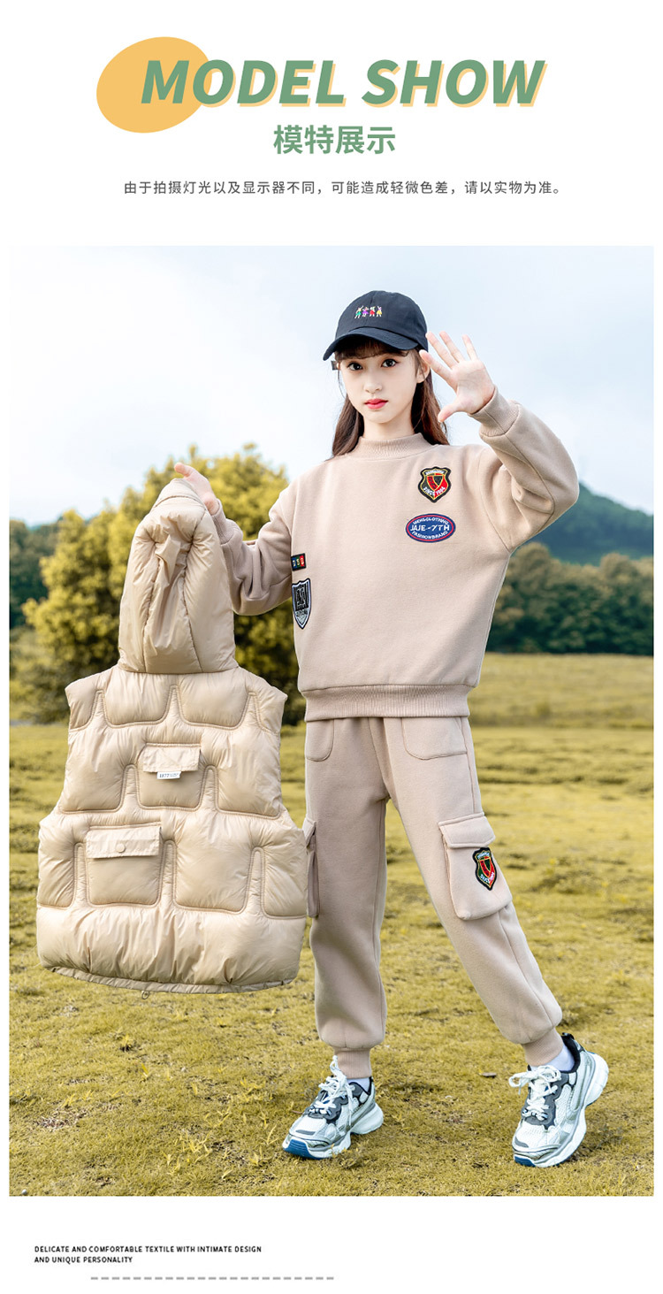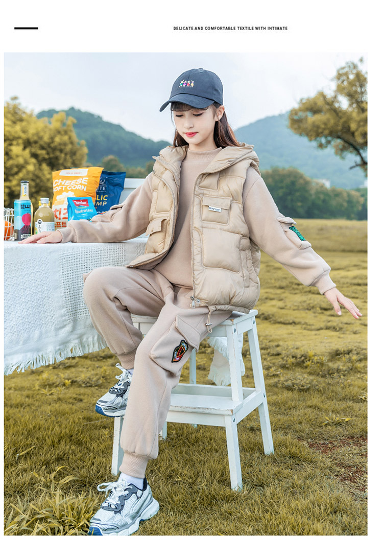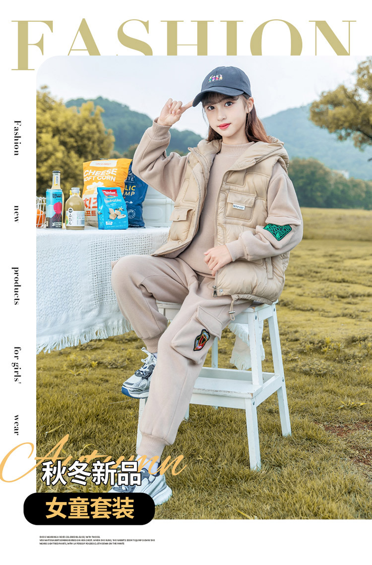 가을과 겨울 아동복 새로운 여아 세트 한국 스타일 기모 스웨터 어린이 여아 두꺼운 조끼 3 종 세트스토어 가기