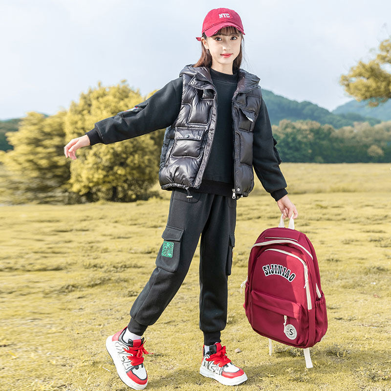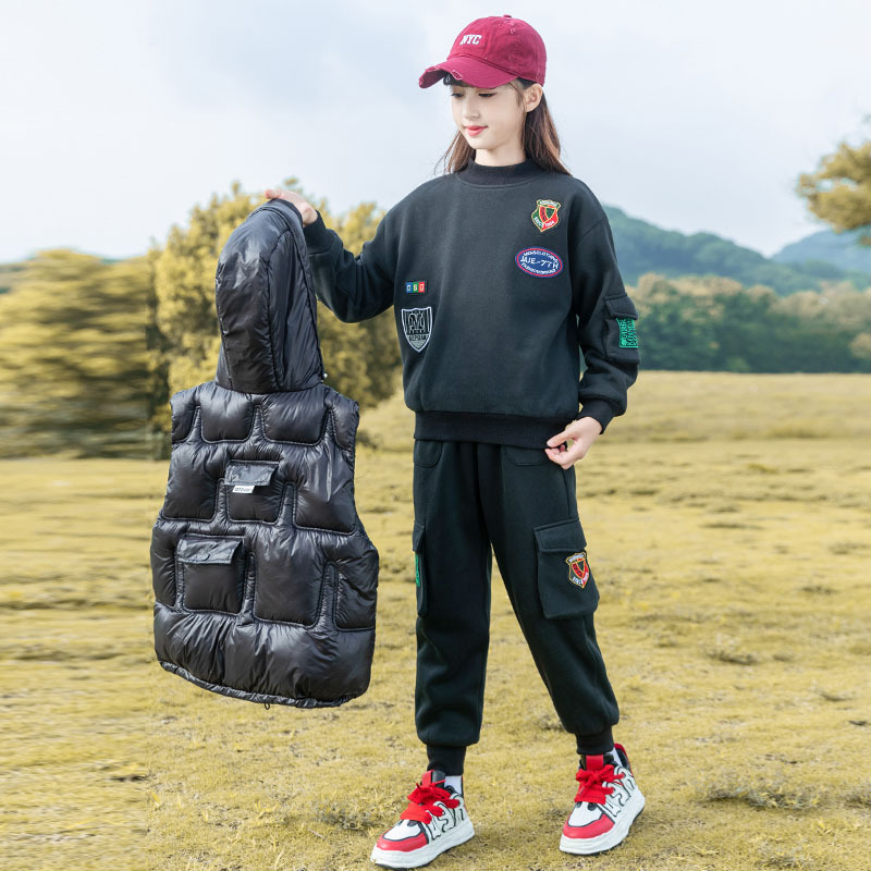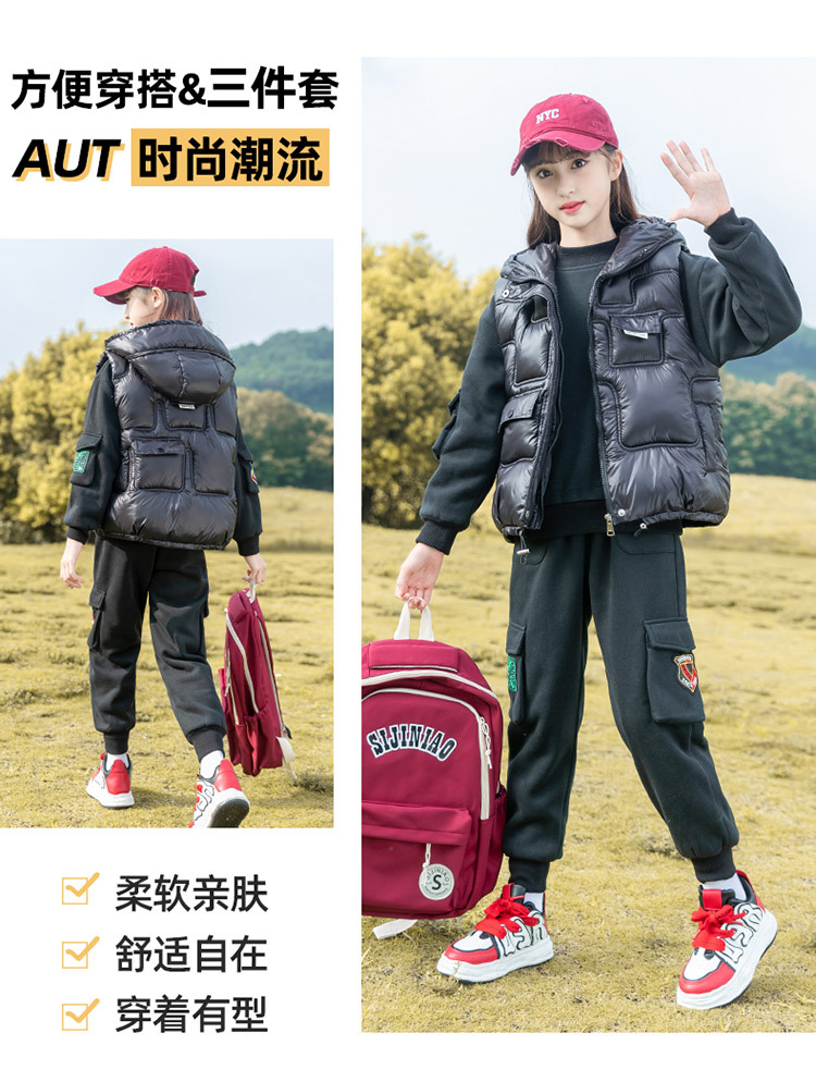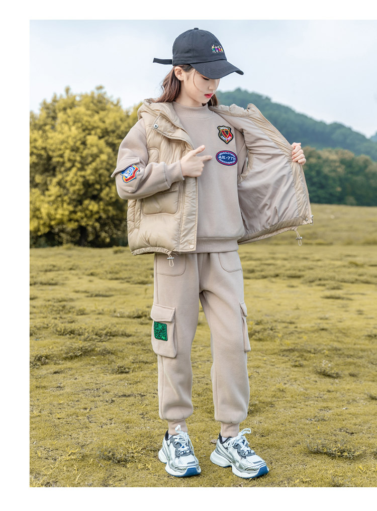 가을과 겨울 아동복 새로운 여아 세트 한국 스타일 기모 스웨터 어린이 여아 두꺼운 조끼 3 종 세트스토어 가기