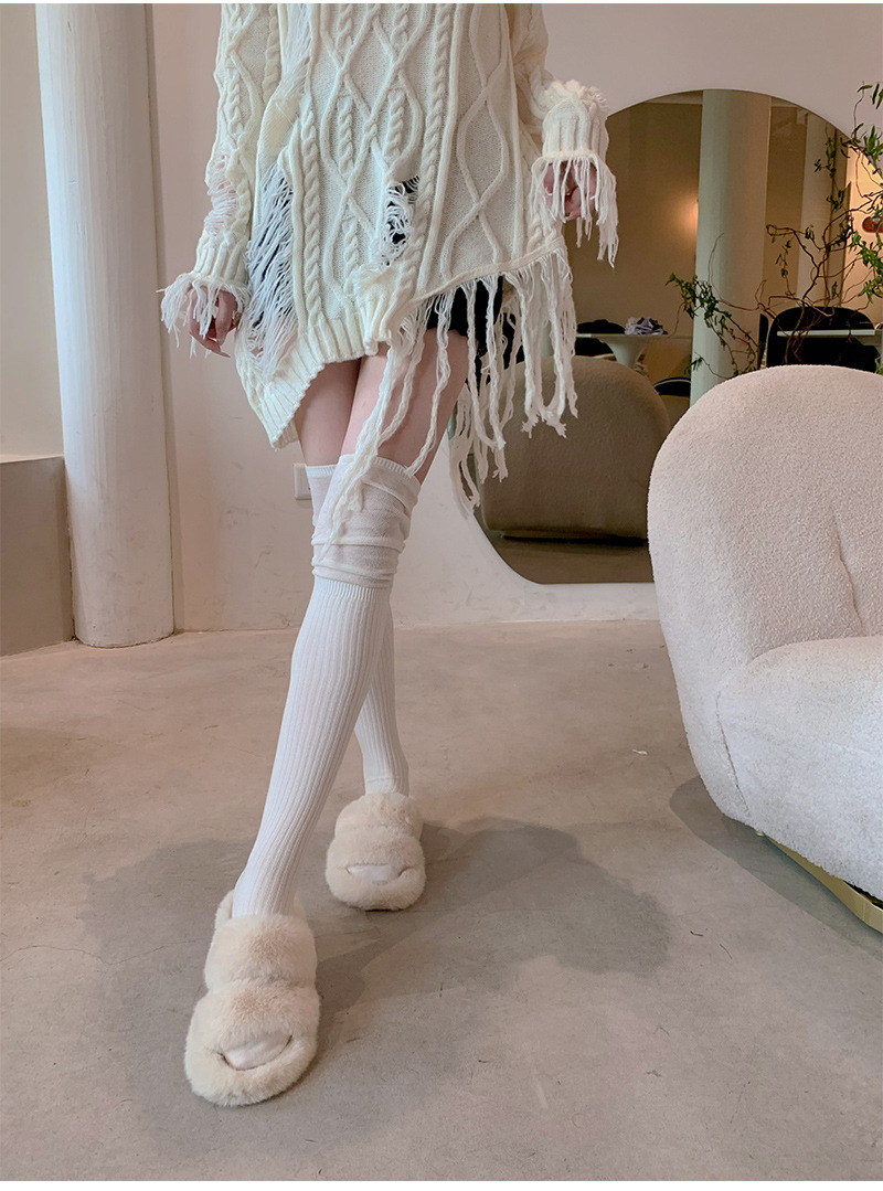 Maillard 스타일 스티칭 와이드 사이드 트위스트 스타킹 부츠 양말 슬림 따뜻한 허벅지 양말 무릎 양말 가을과 겨울