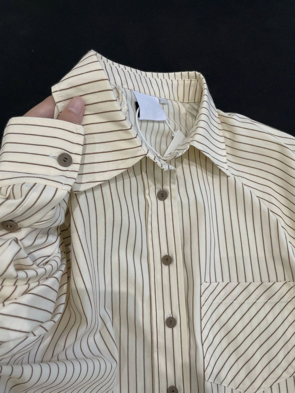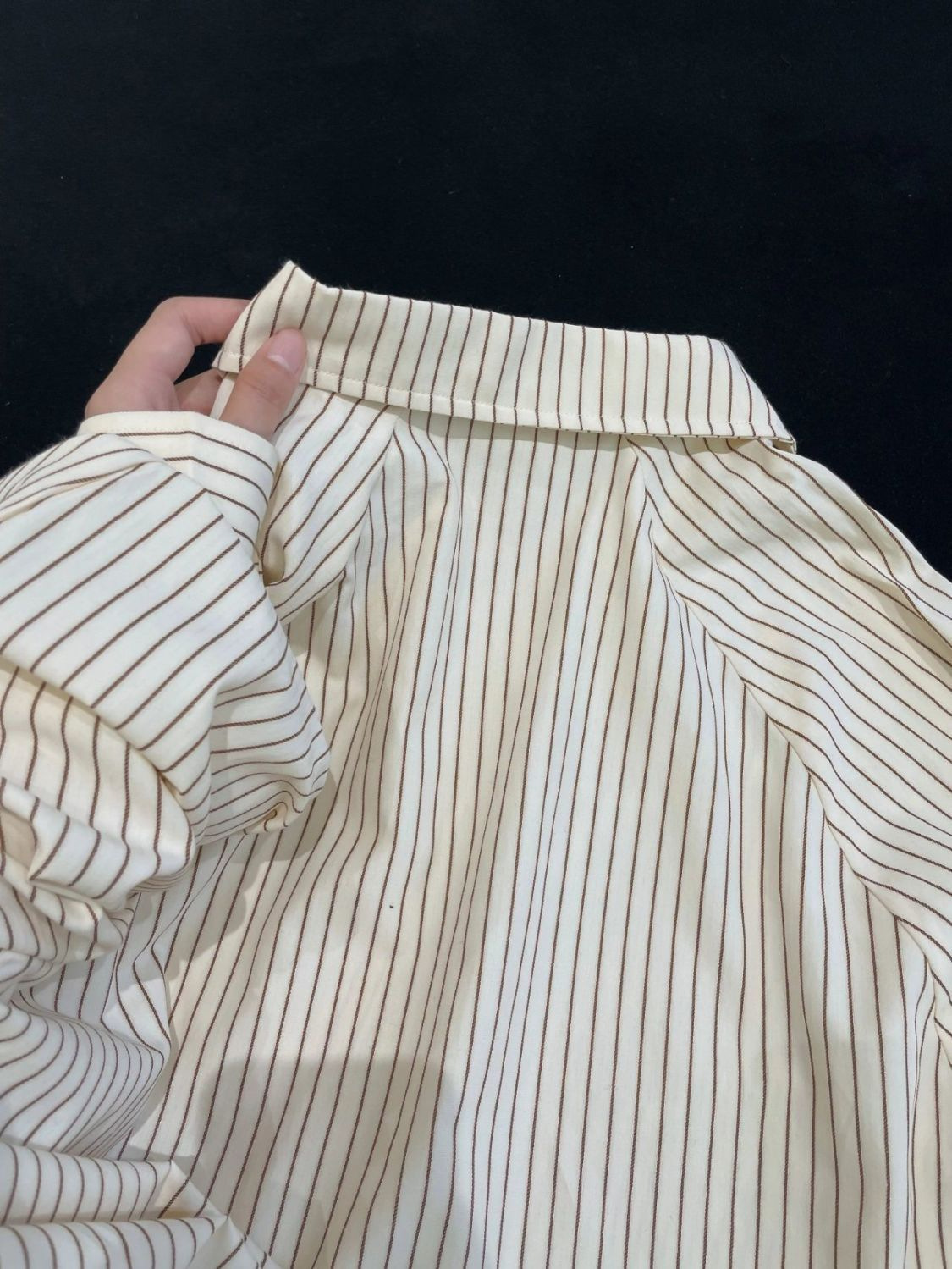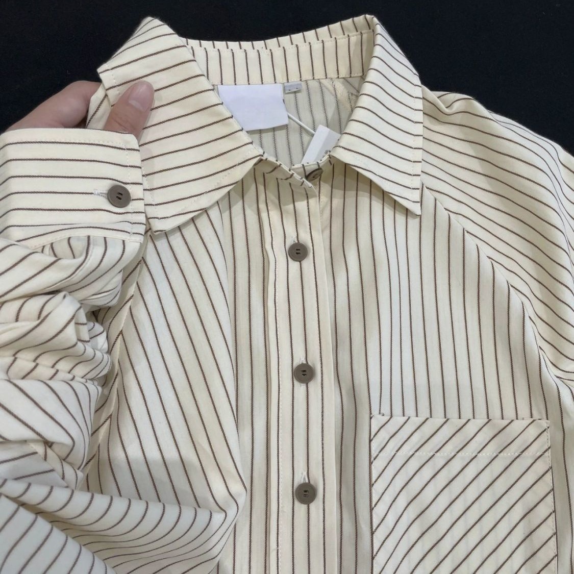 디자인 센스 스트라이프 긴팔 셔츠 코트 여성의 봄과 가을 캐주얼 의상 틈새 심플 라펠 셔츠 트렌디스토어 가기
