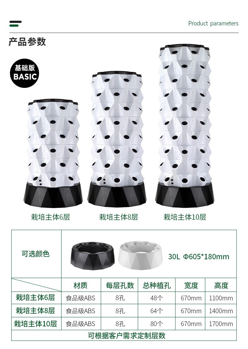 1:塔式水培设备:分别有6;8;10层是现货,如需定制其他层次可与客服联系。