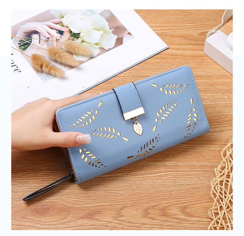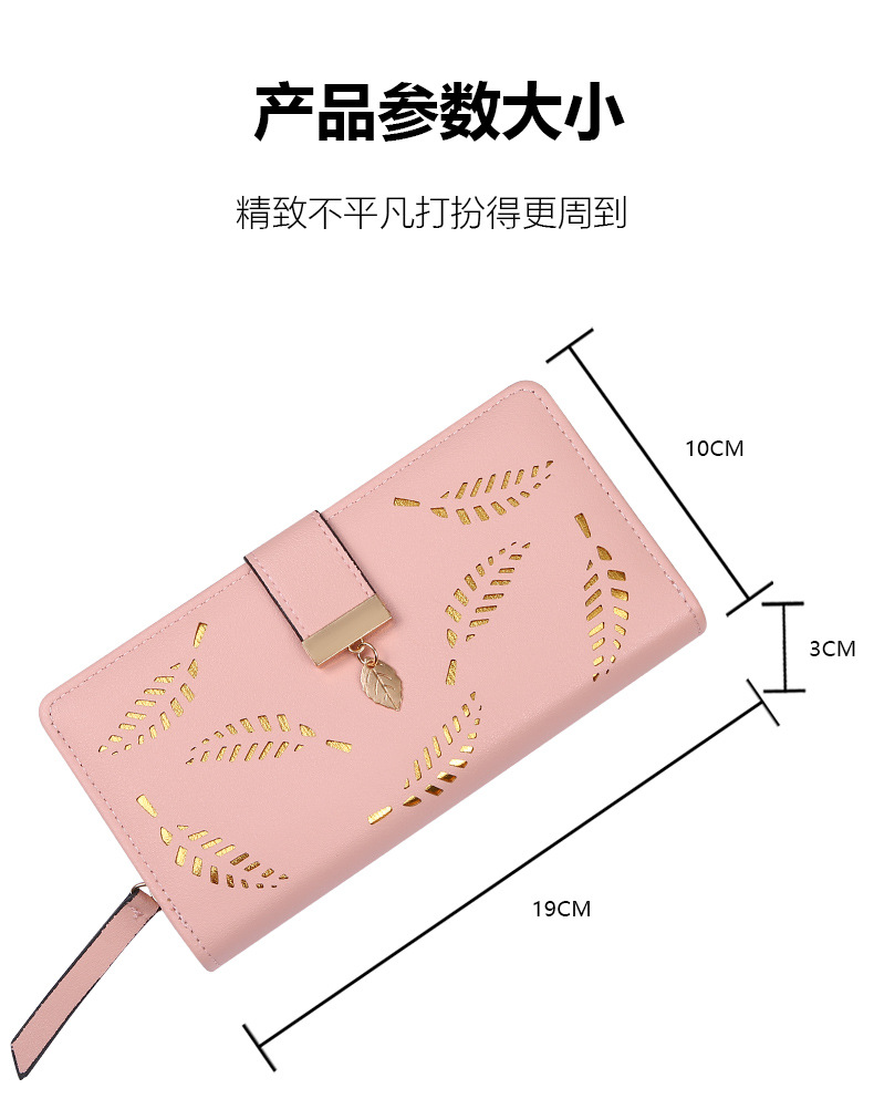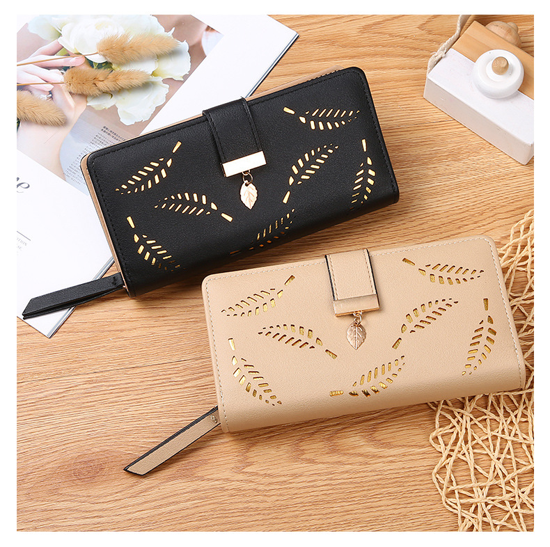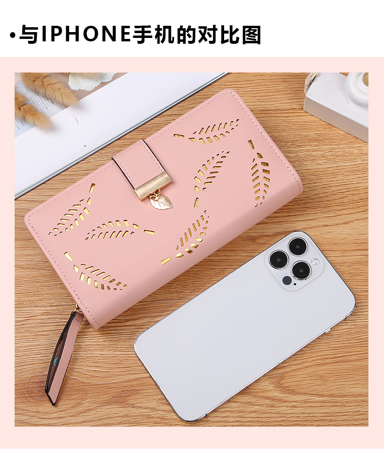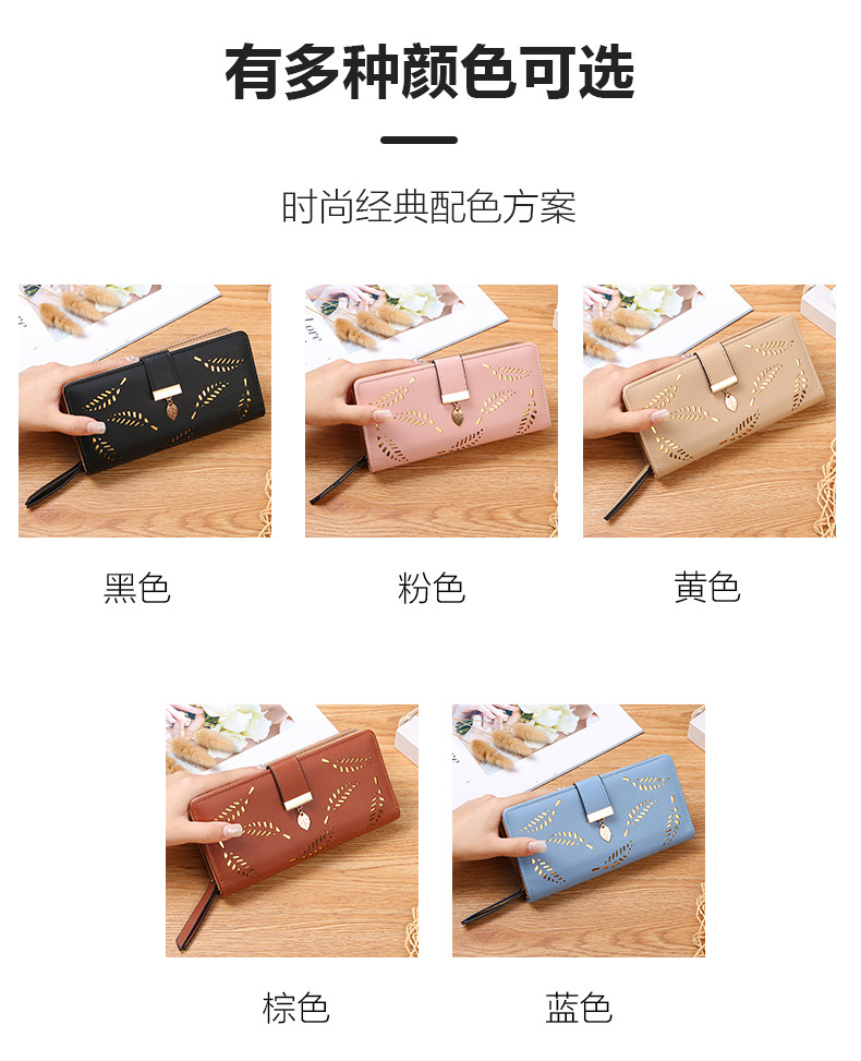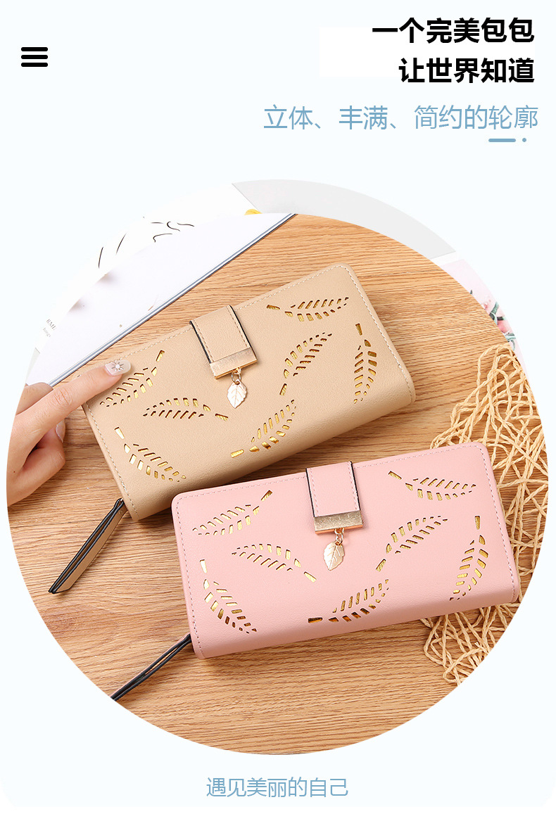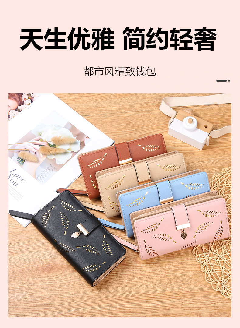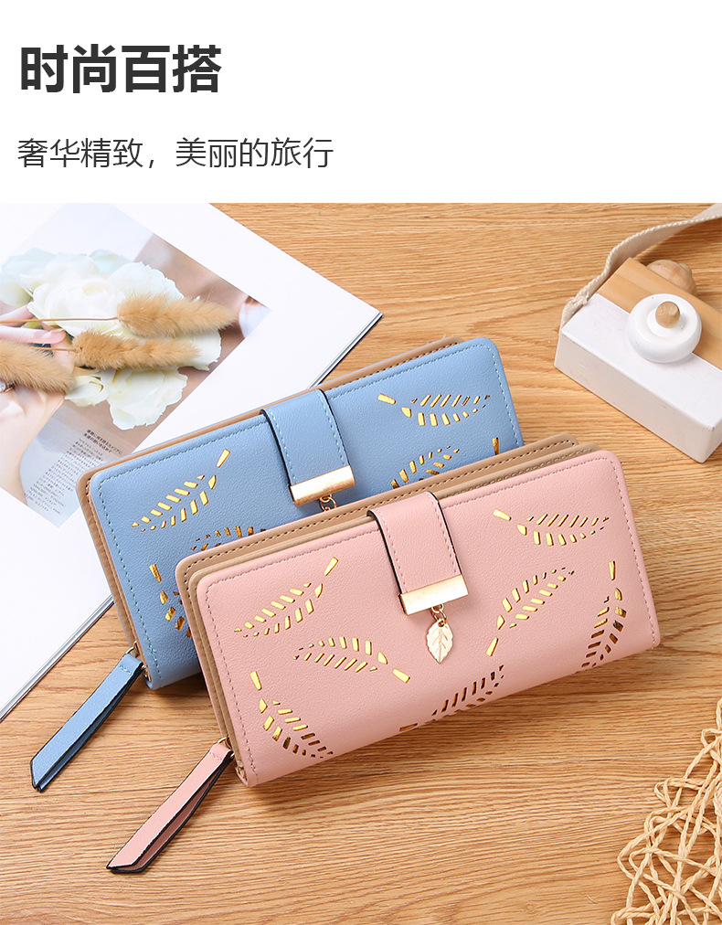 2023新款韩版女士钱包长款时尚手拿包镂空树叶拉链搭扣钱包女包包