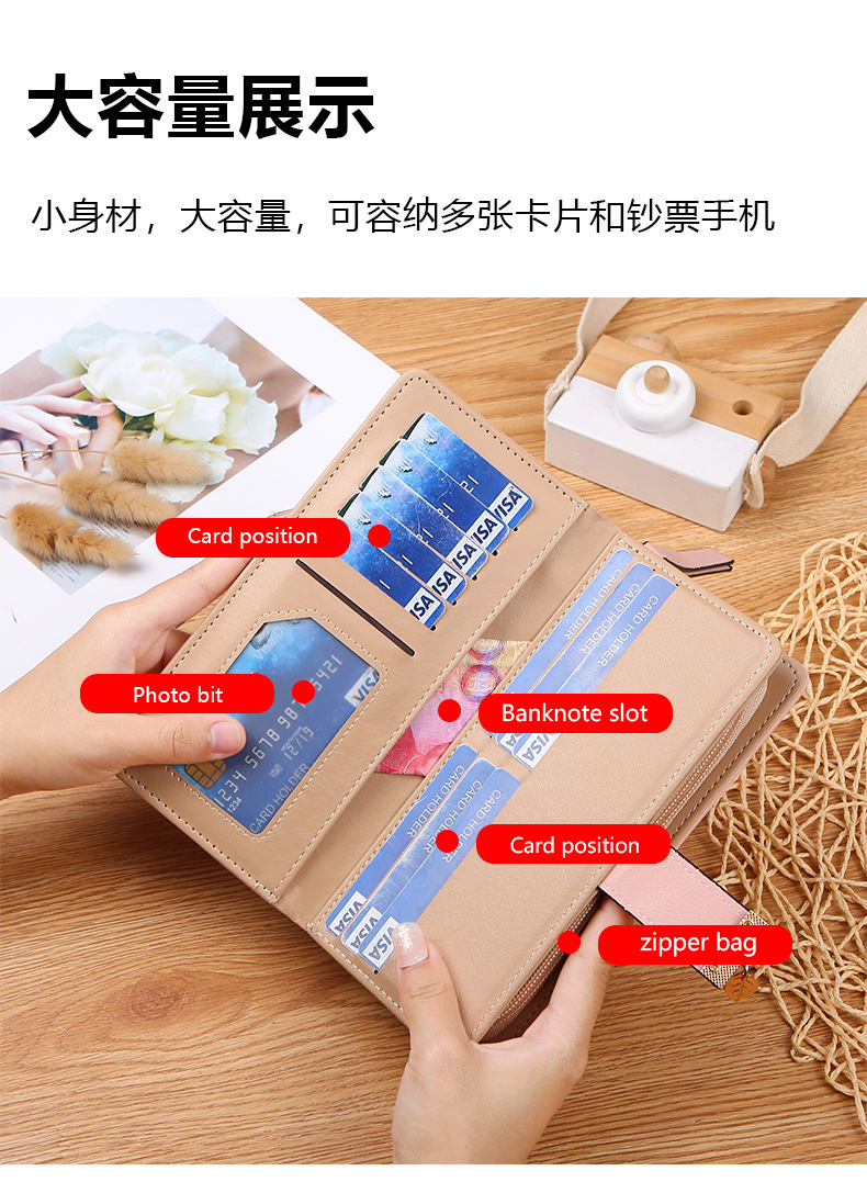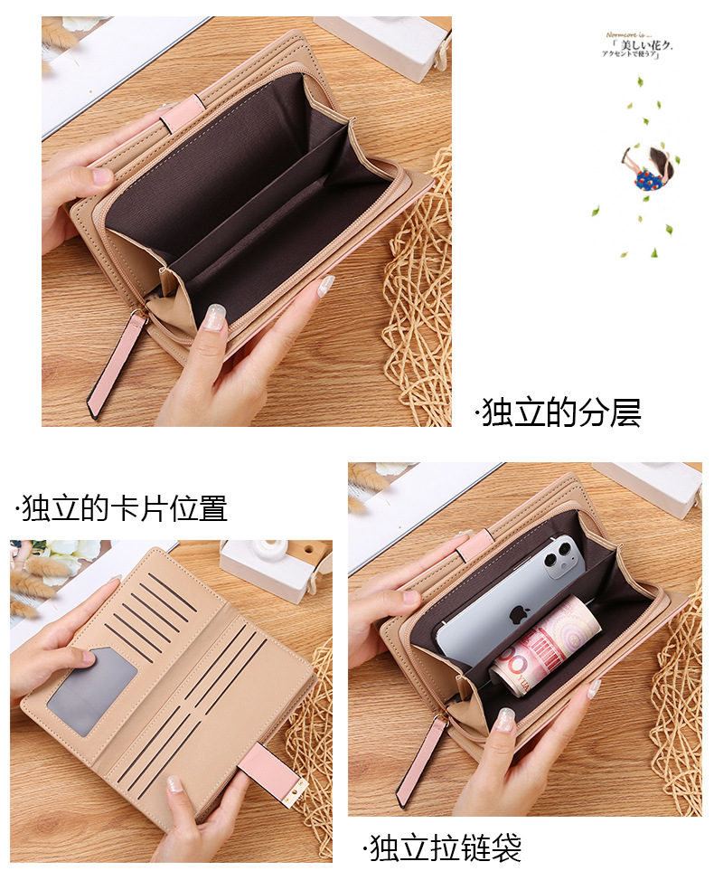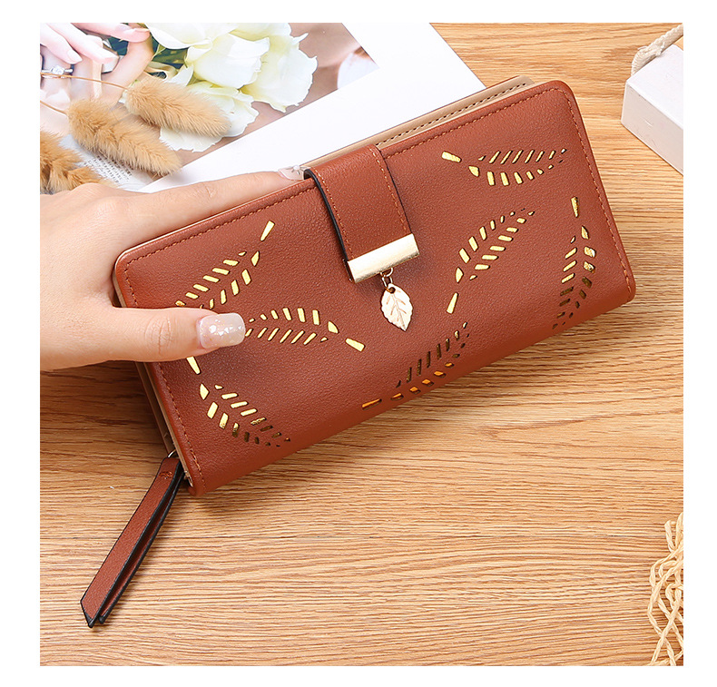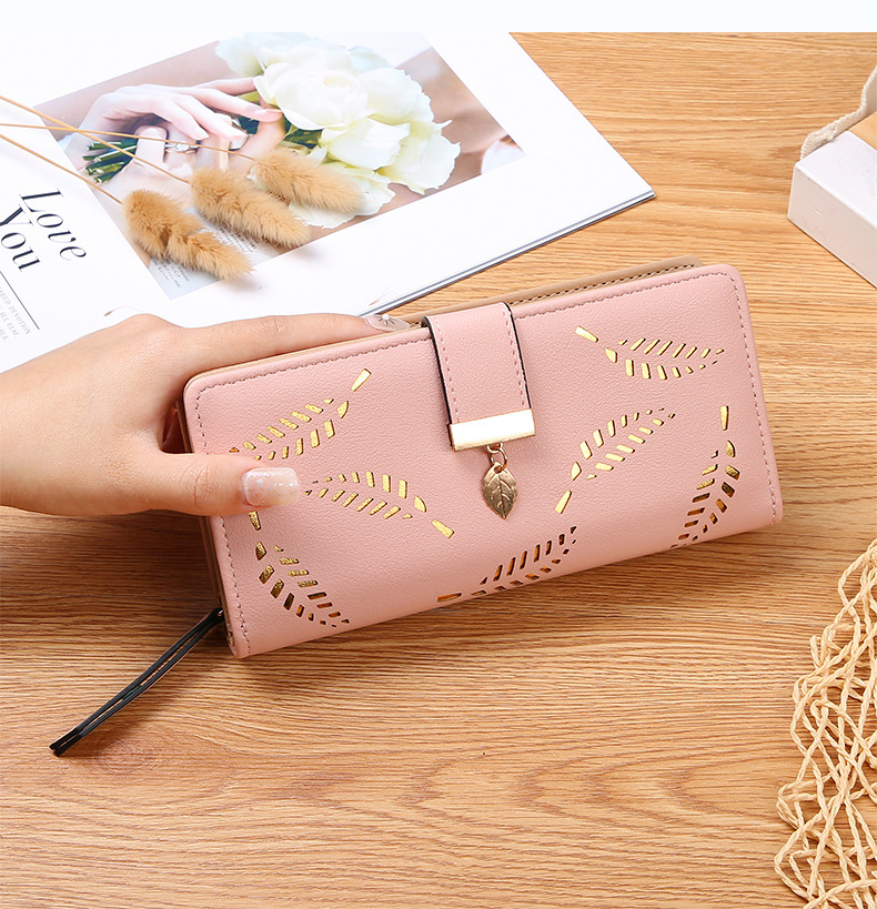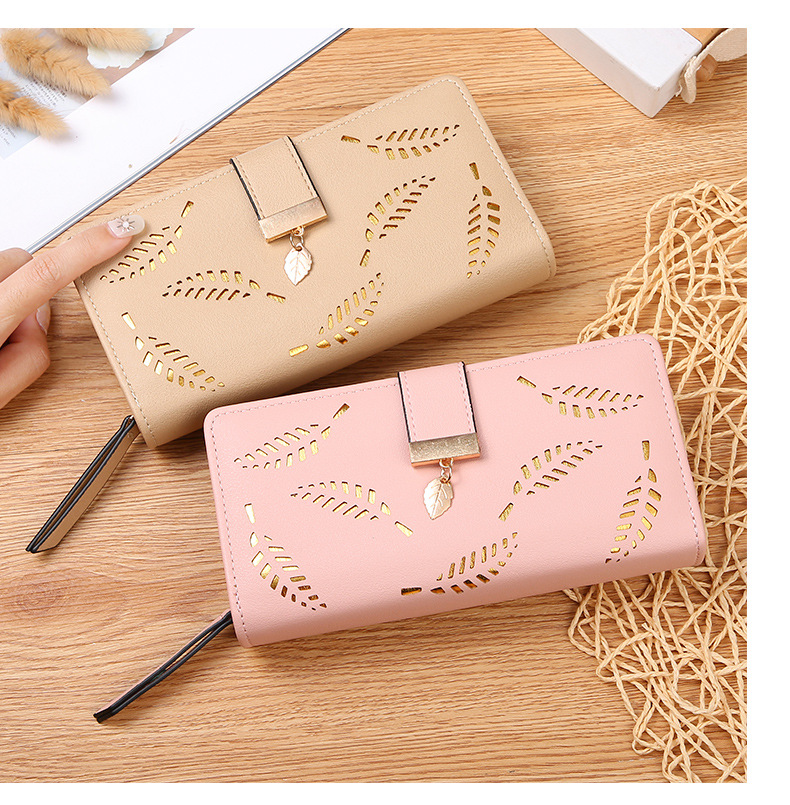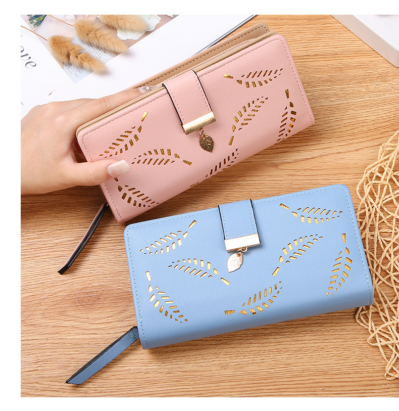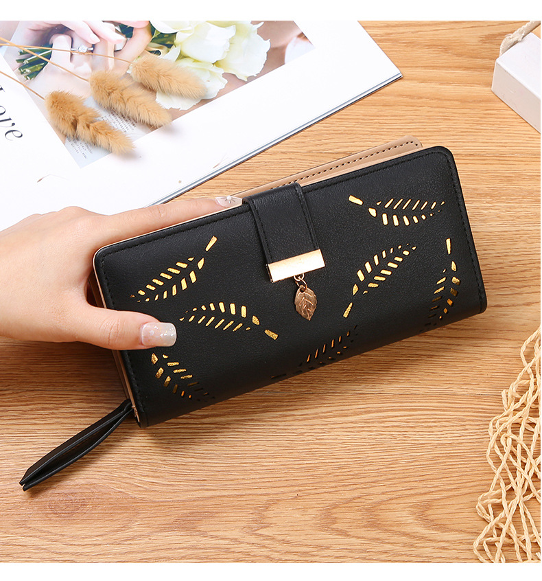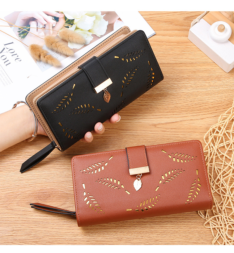2023新款韩版女士钱包长款时尚手拿包镂空树叶拉链搭扣钱包女包包