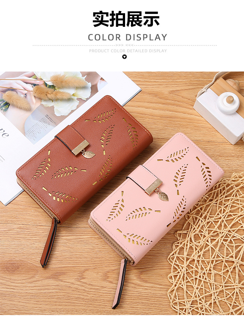 2024 새로운 한국 스타일 여성 지갑 긴 패션 클러치 백 중공 잎 지퍼 버클 지갑 여성 가방