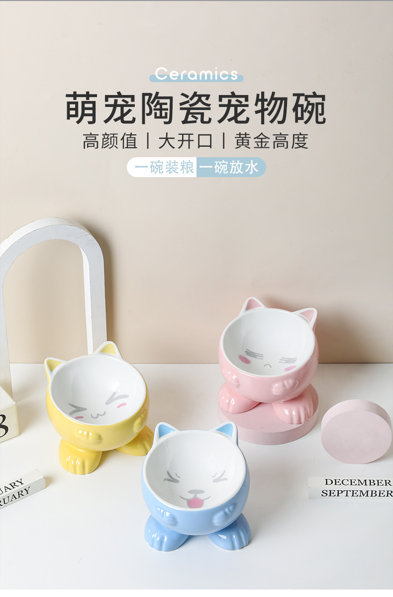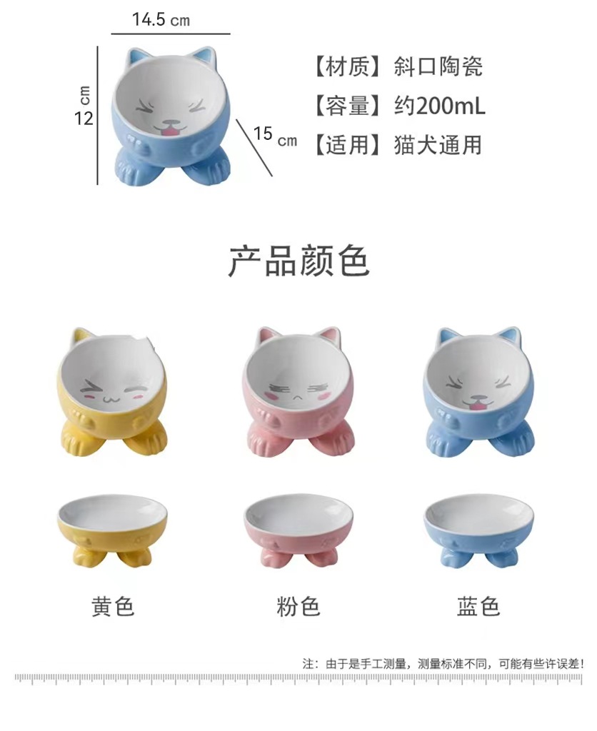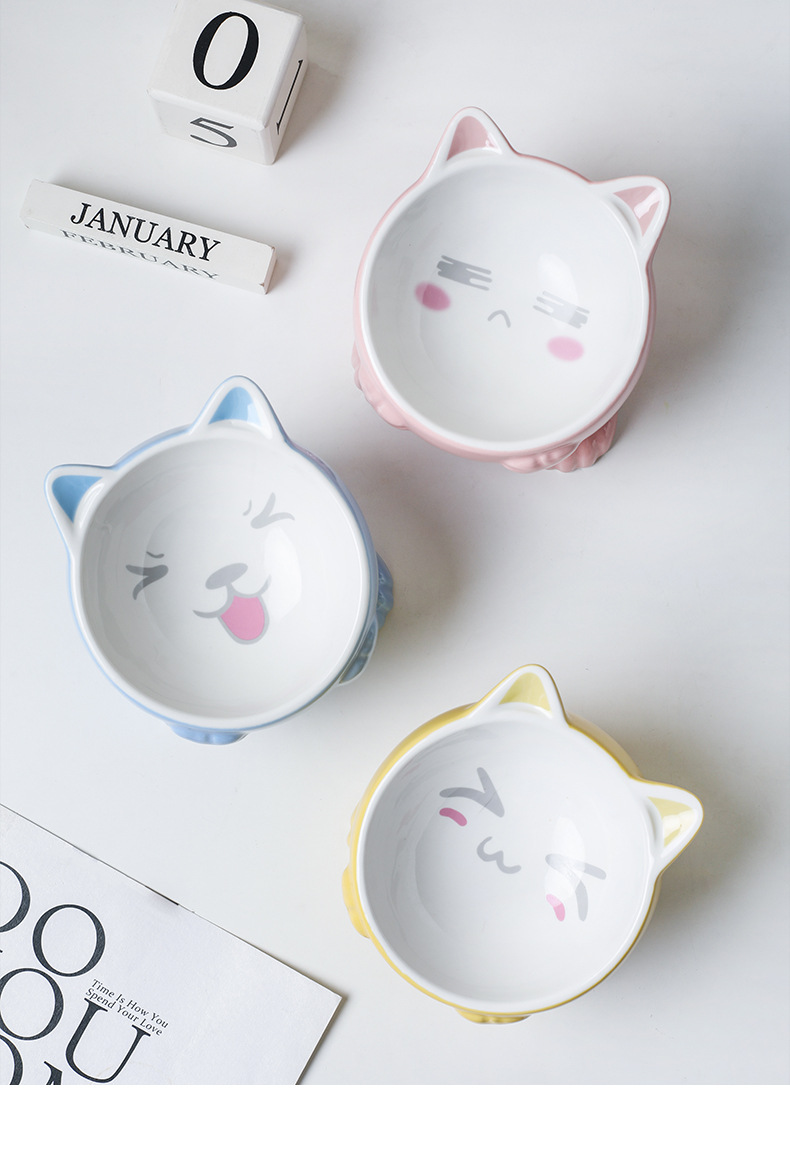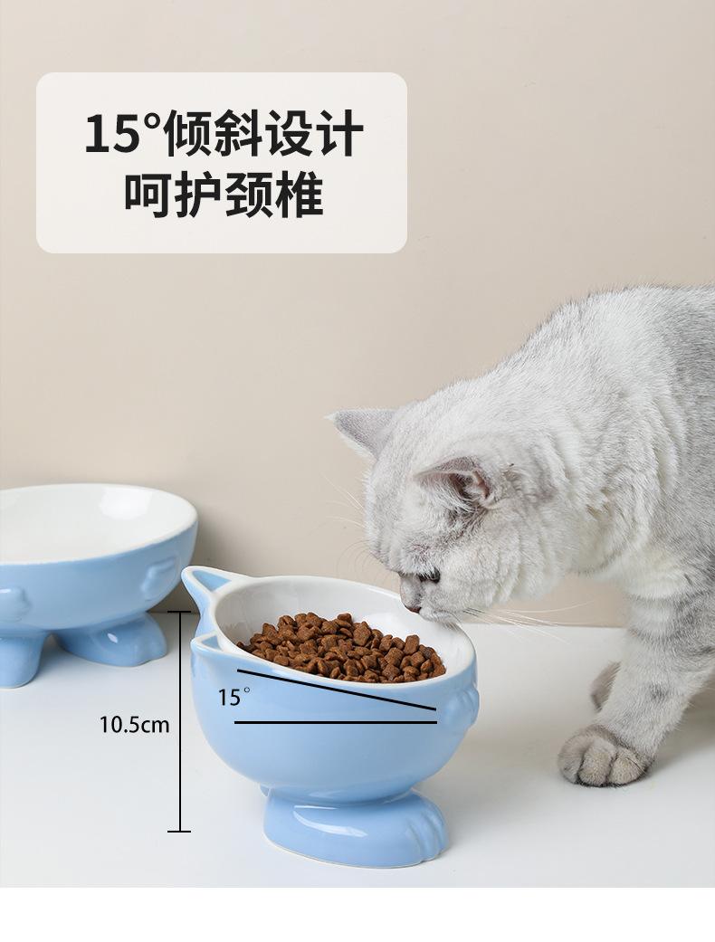 고양이 그릇 세라믹 보호 경추 안티 노크 귀여운 대각선 개 고양이 음식 분지 애완 동물 용품 먹고 마시는 그릇스토어 가기