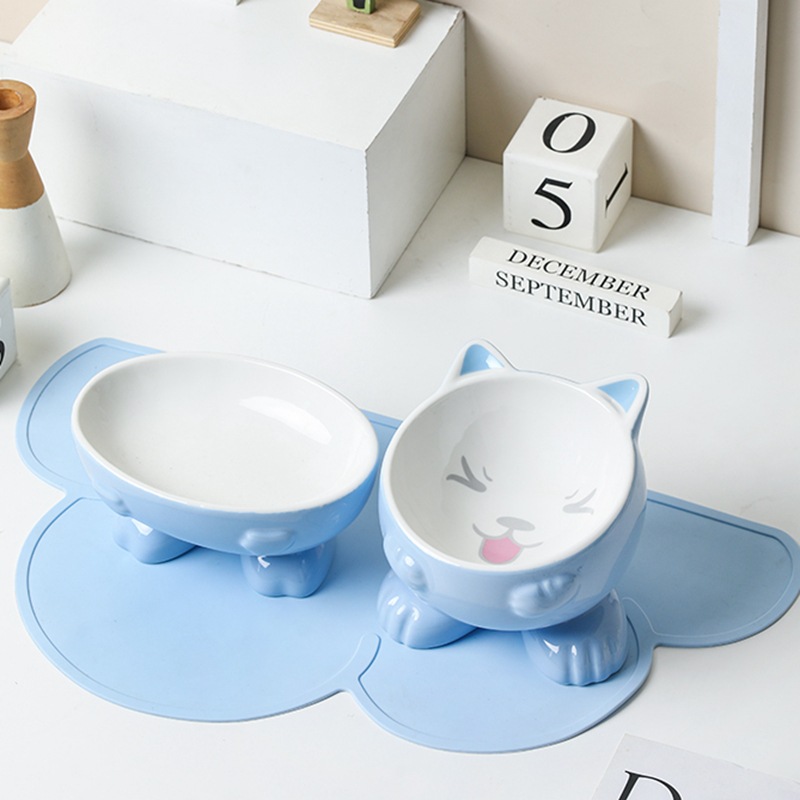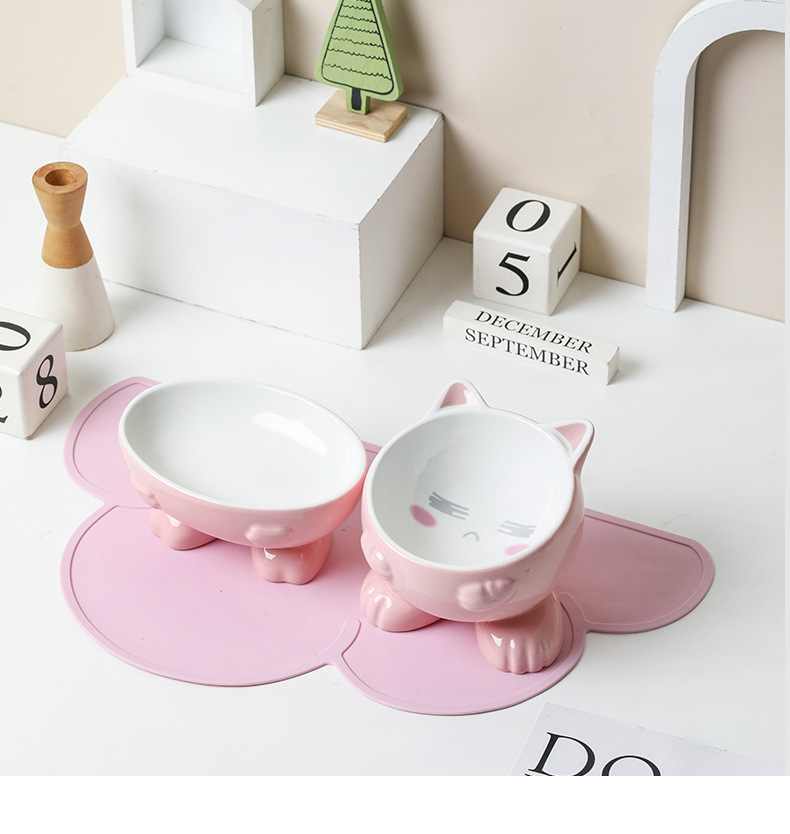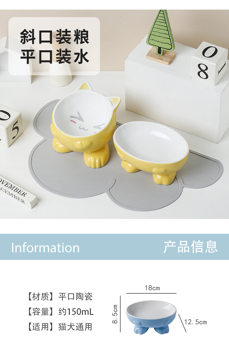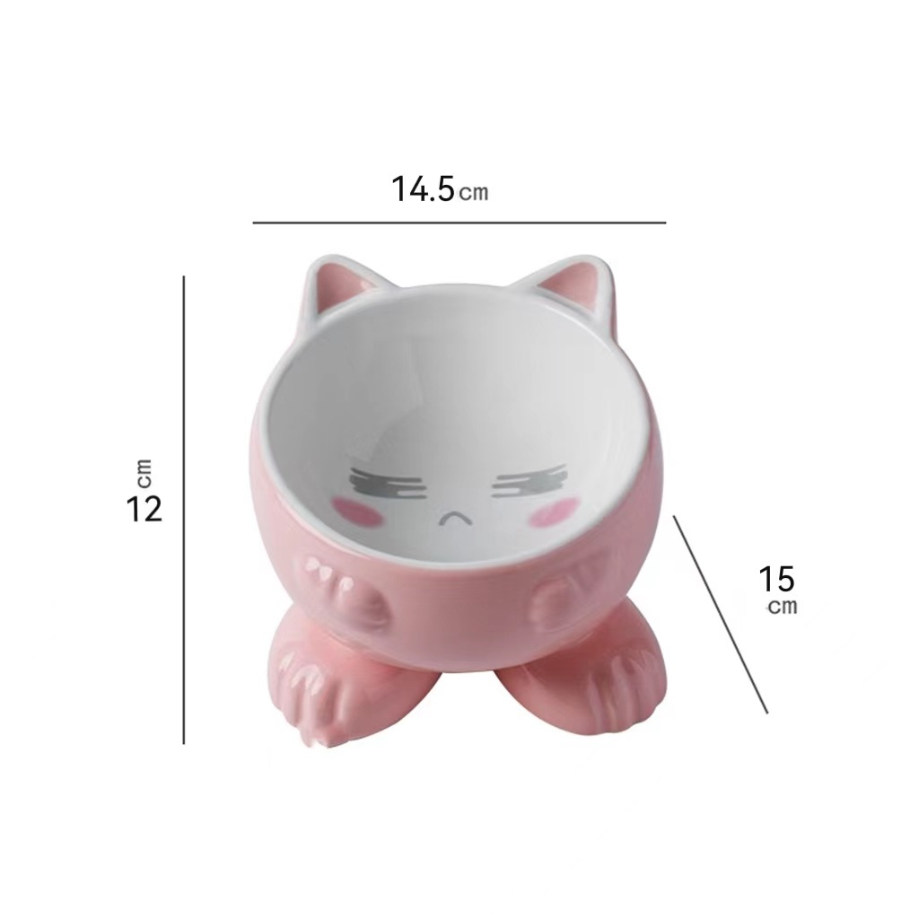 고양이 그릇 세라믹 보호 경추 안티 노크 귀여운 대각선 개 고양이 음식 분지 애완 동물 용품 먹고 마시는 그릇스토어 가기