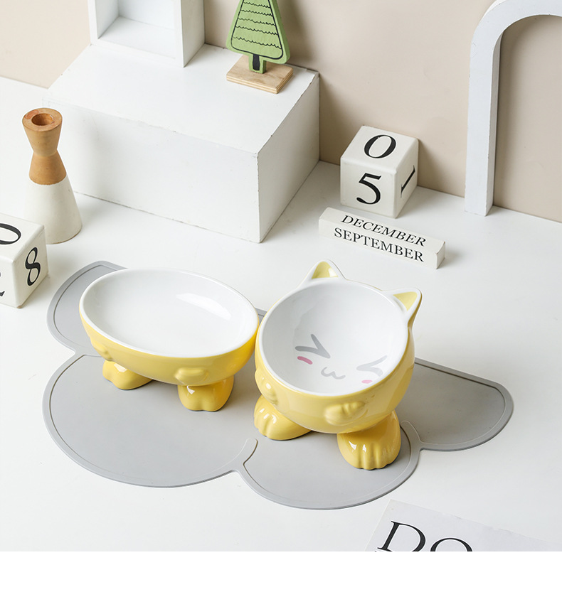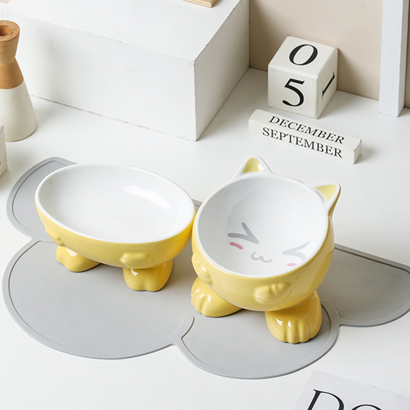 • 노란색 고양이 귀 그릇 + 노란색 타원형 그릇-미끄럼 방지 매트