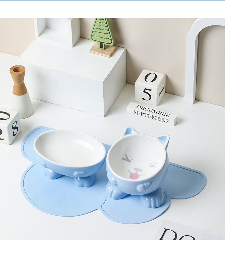 고양이 그릇 세라믹 보호 경추 안티 노크 귀여운 대각선 개 고양이 음식 분지 애완 동물 용품 먹고 마시는 그릇