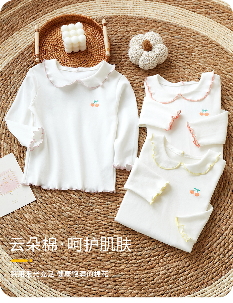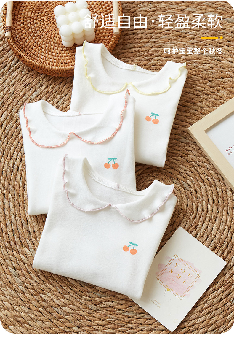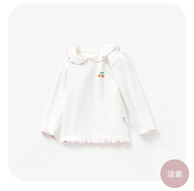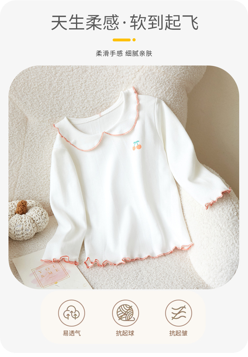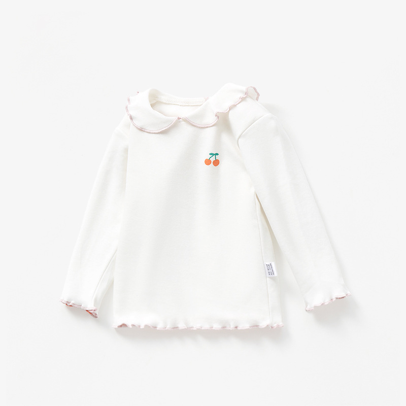 걸스베이스 셔츠 순면 봄과 가을 흰색 인형 칼라 어린이 최고 공주 아기 긴 소매 티셔츠 가을 착용