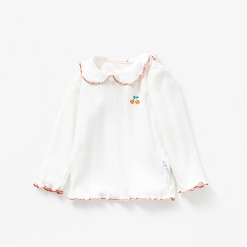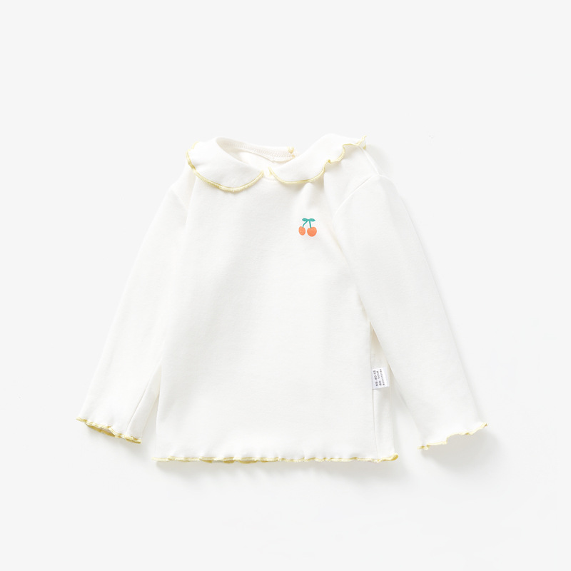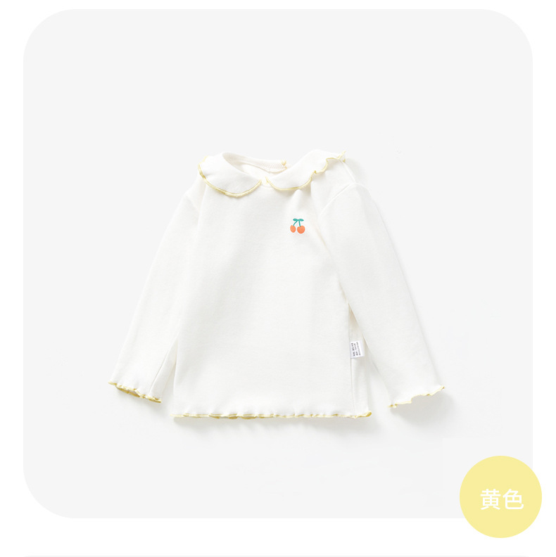 걸스베이스 셔츠 순면 봄과 가을 흰색 인형 칼라 어린이 최고 공주 아기 긴 소매 티셔츠 가을 착용스토어 가기