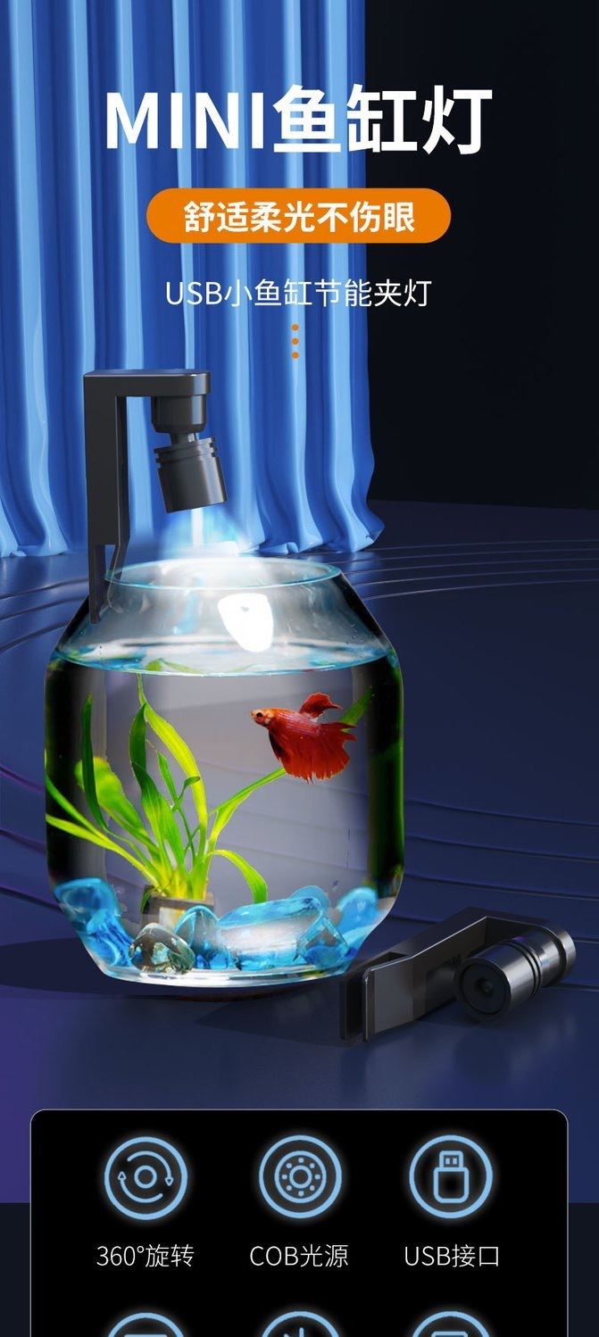 양동이 어항 소형 클립 램프 물 잔디 램프 어항 램프 미니 소형 USB 소형 어항 램프 데스크탑 LED 어항 램프 크로스 보더스토어 가기