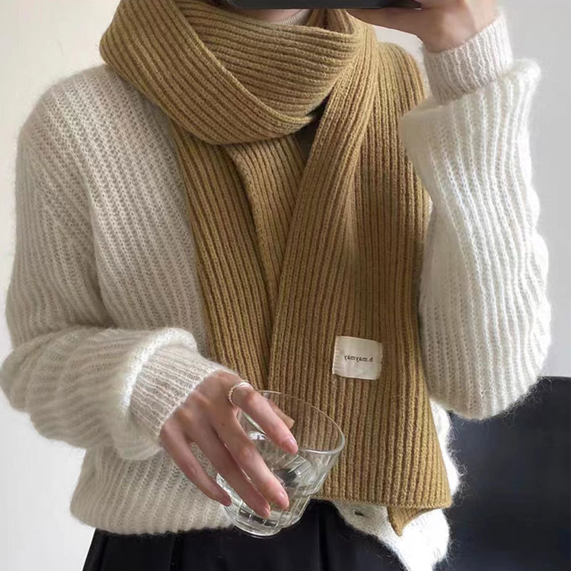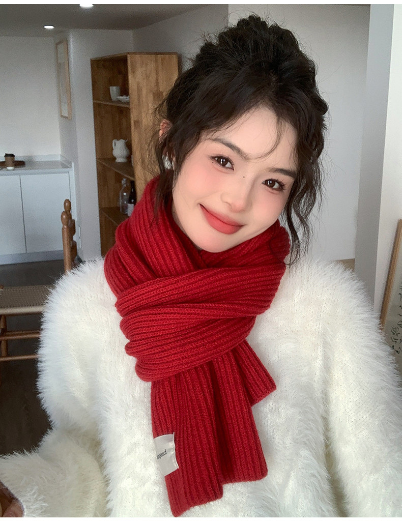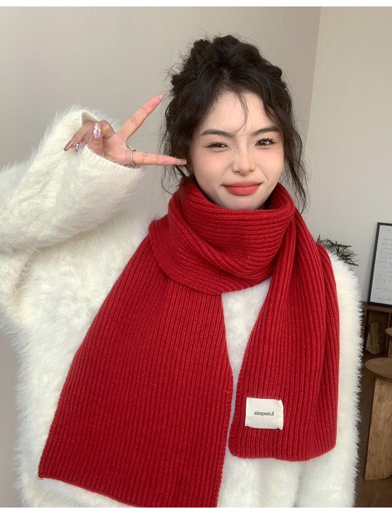남성과 여성을위한 새해 빨간 니트 스카프 겨울 크리스마스 학생 커플 두꺼운 모직 스카프 한국어 인스토어 가기
