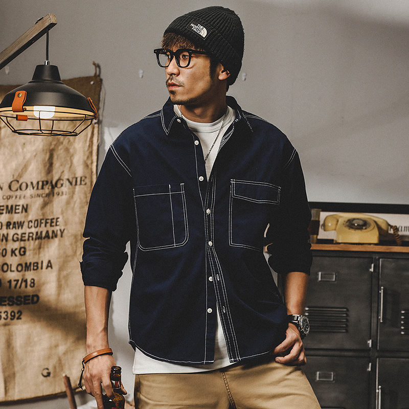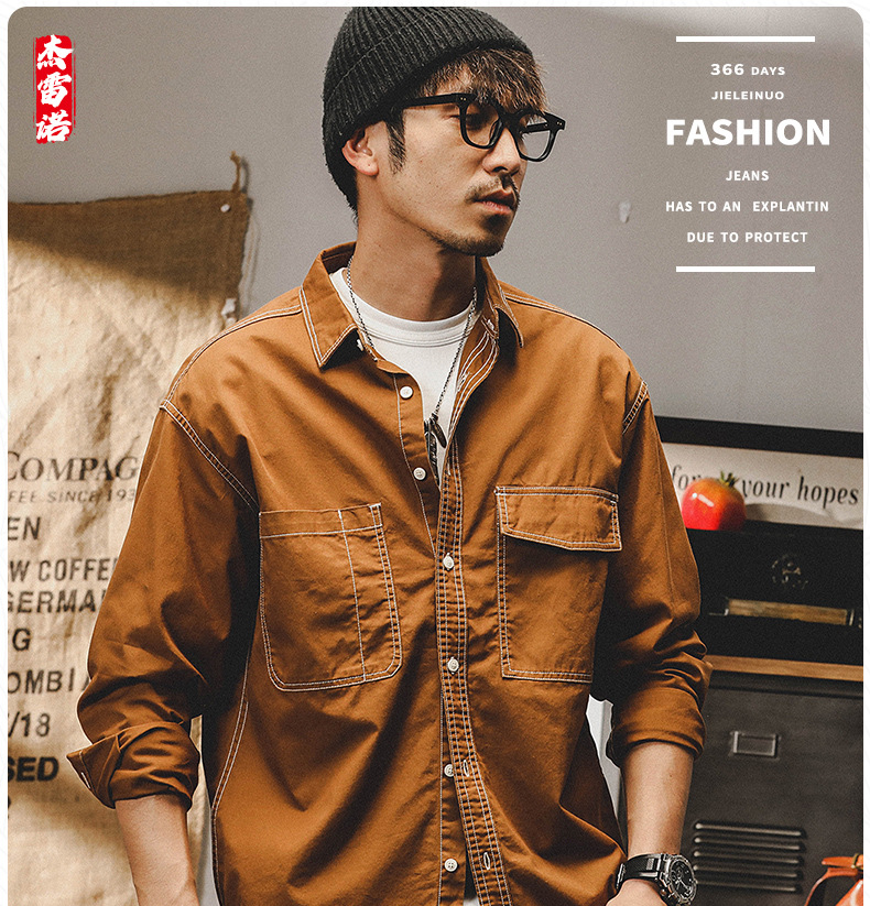 미국 복고풍 작업 셔츠 남자의 긴 소매 느슨한 2023 새로운 캐주얼 셔츠 남자의 가을 재킷 남자의 패션스토어 가기