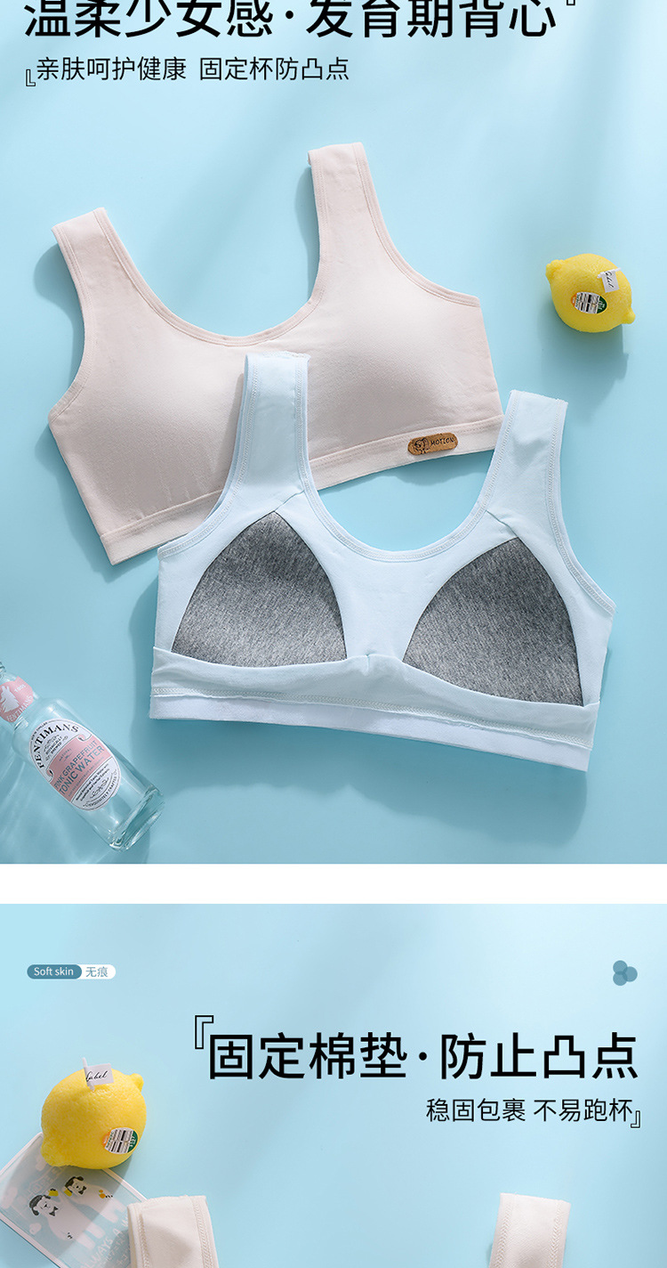 초등학생 여아용 조끼형 브라, 중고등학생 여아용 속옷, 어린이 여아용 브라, 통기성 좋은 패드 내장, 노와이어, 여아용스토어 가기