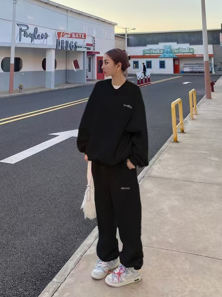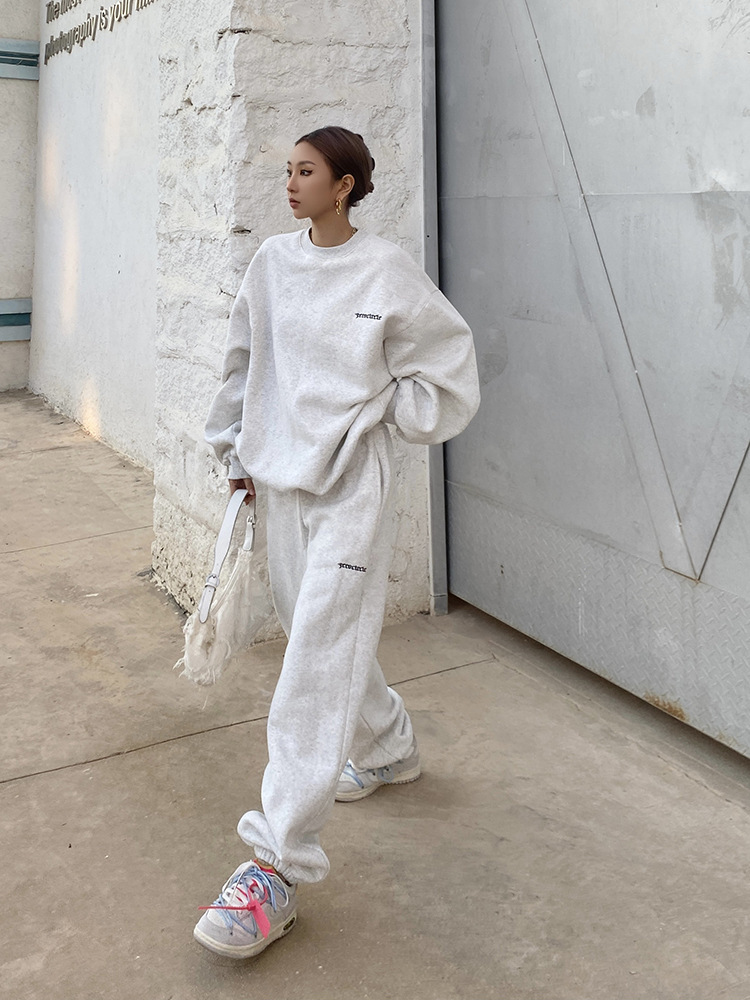아메리칸 스타일 패션 브랜드 회색 스포츠 운동복 세트 여성의 봄 가을과 겨울 얇은 느슨한 게으른 스타일 캐주얼 바지스토어 가기
