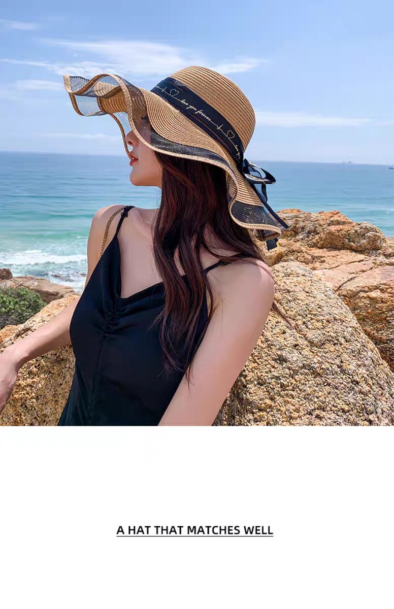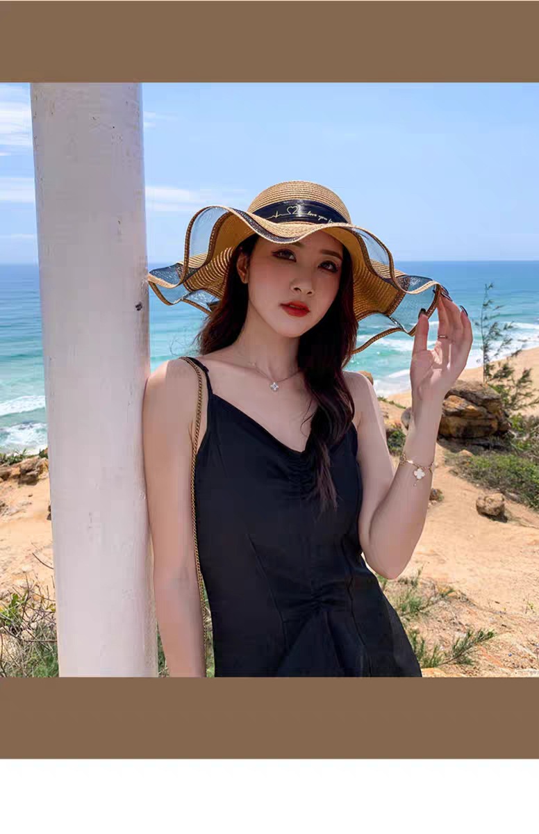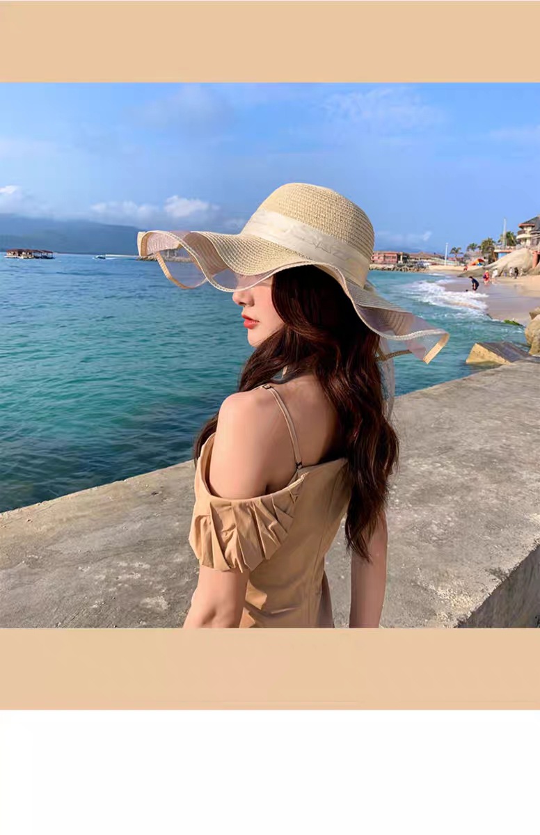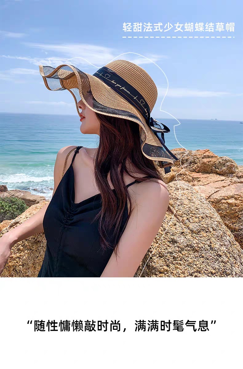 밀짚 모자 여자의 여름 해변 해변 여행 차양 휴일 자외선 차단제 큰 모자 챙 큰 테두리 멋진 모자 인터넷 빨간 태양 모자스토어 가기