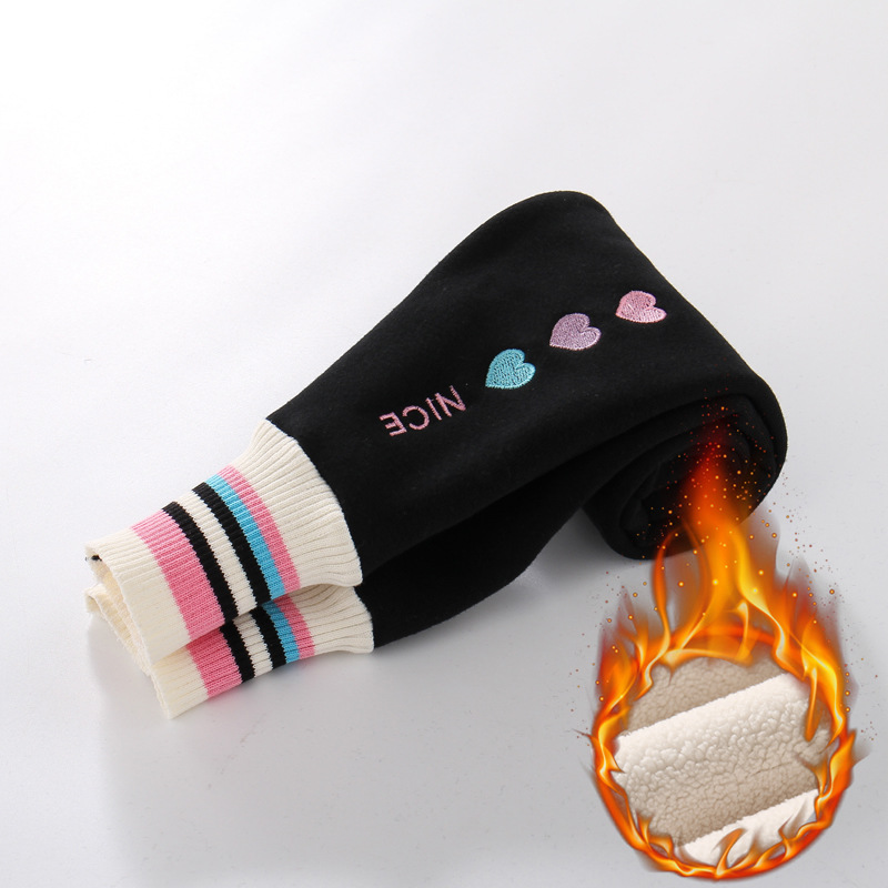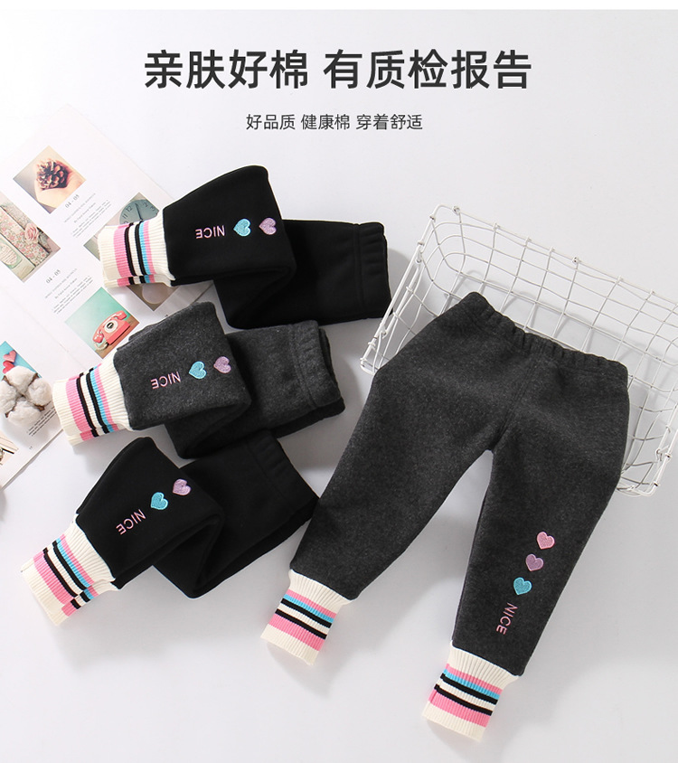 어린이 레깅스 기모 겨울 여아 바지 겉옷 벨벳 바지 사랑 자수 아기 여아 따뜻한 유행 바지