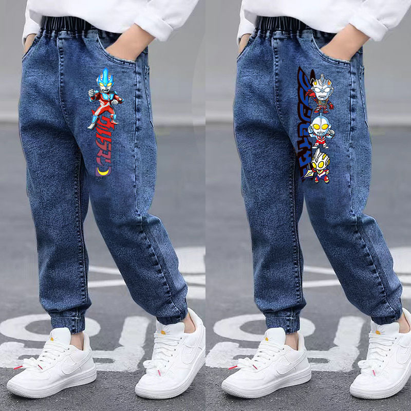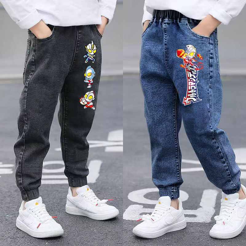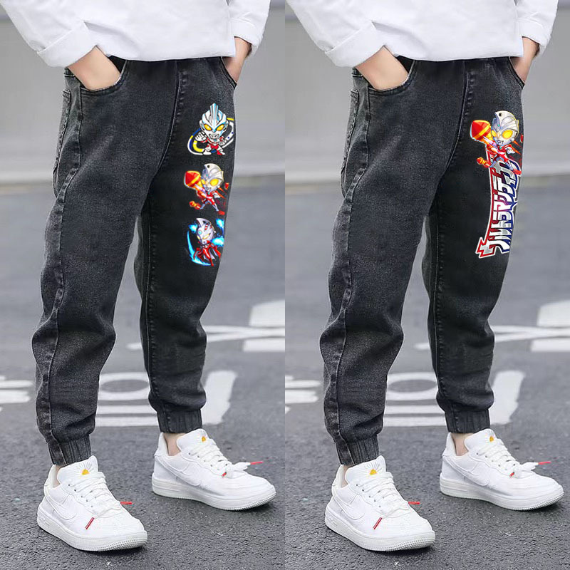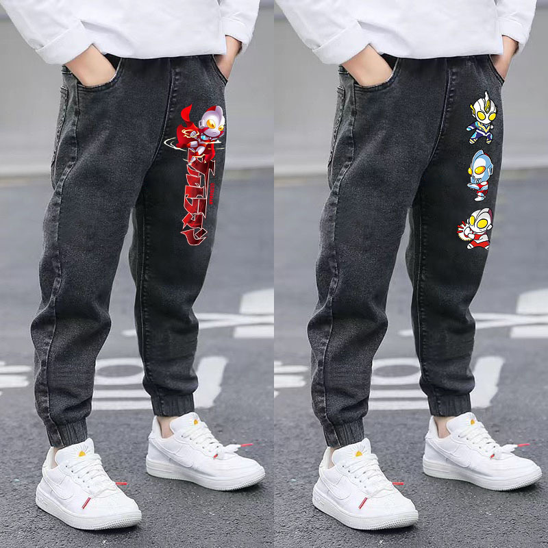 울트라 맨 소년 청바지 2025 봄, 가을 새로운 어린이 가을 두꺼운 느슨한 바지 소년 캐주얼 바지스토어 가기