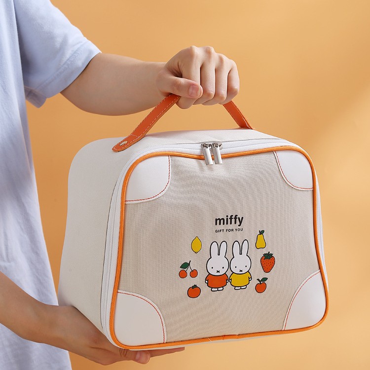 INS 미피 도시락 보온 가방 휴대용 휴대용 야외 피크닉 가방 학생 작업 접시 도시락 가방 miffy