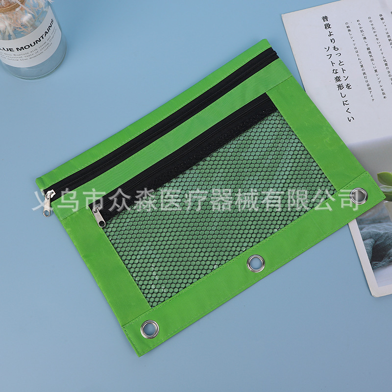 크로스 보더 옥스포드 천 에어 아이 바인더 B5 사무실 보관 파일 가방 3 홀 싱글 더블 지퍼 펜 가방 재고 도매스토어 가기