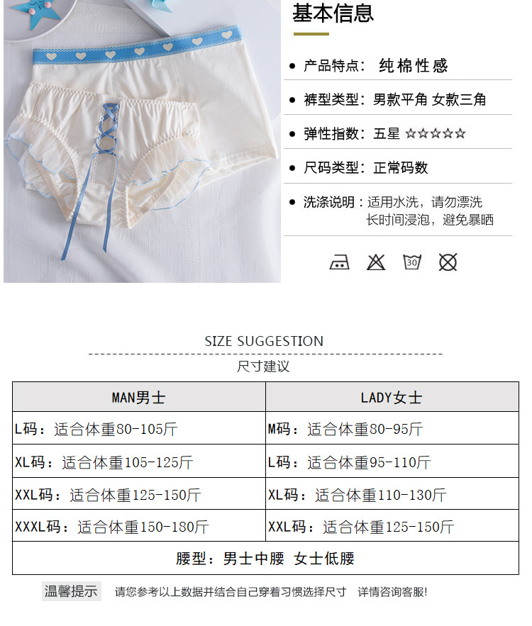 커플 속옷 일본식 달콤한 소녀의 귀여운 팬티 순면 소녀의 활 순수한 욕망 한 남자와 한 여자의 레이스