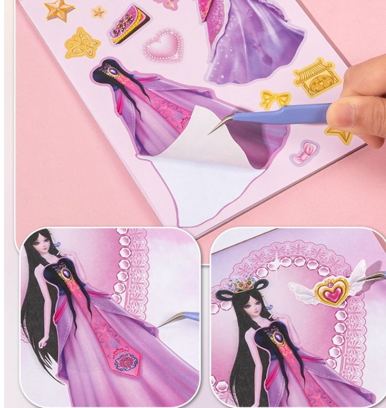 예 Luoli 원피스 스티커 책 어린이 소녀 장난감 아기 3 ~ 6 세 공주 메이크업 변경 스티커 책스토어 가기