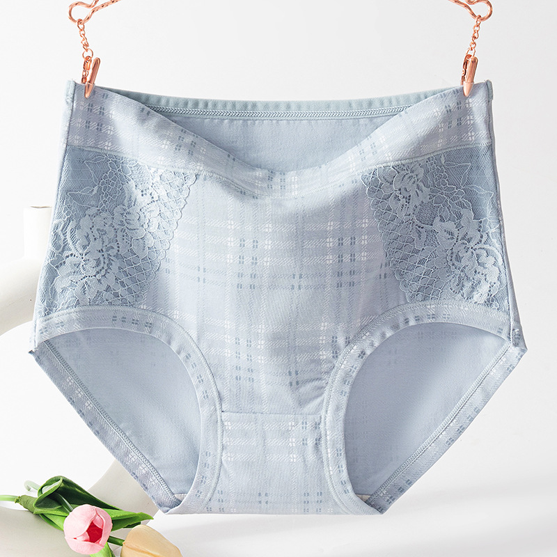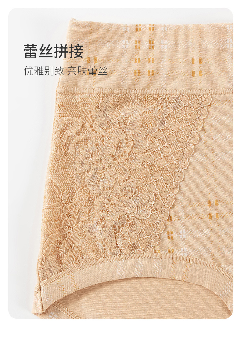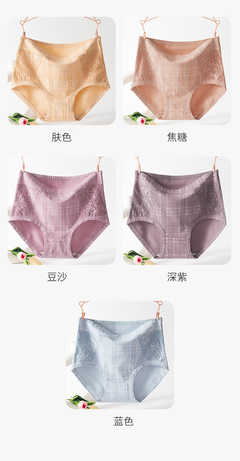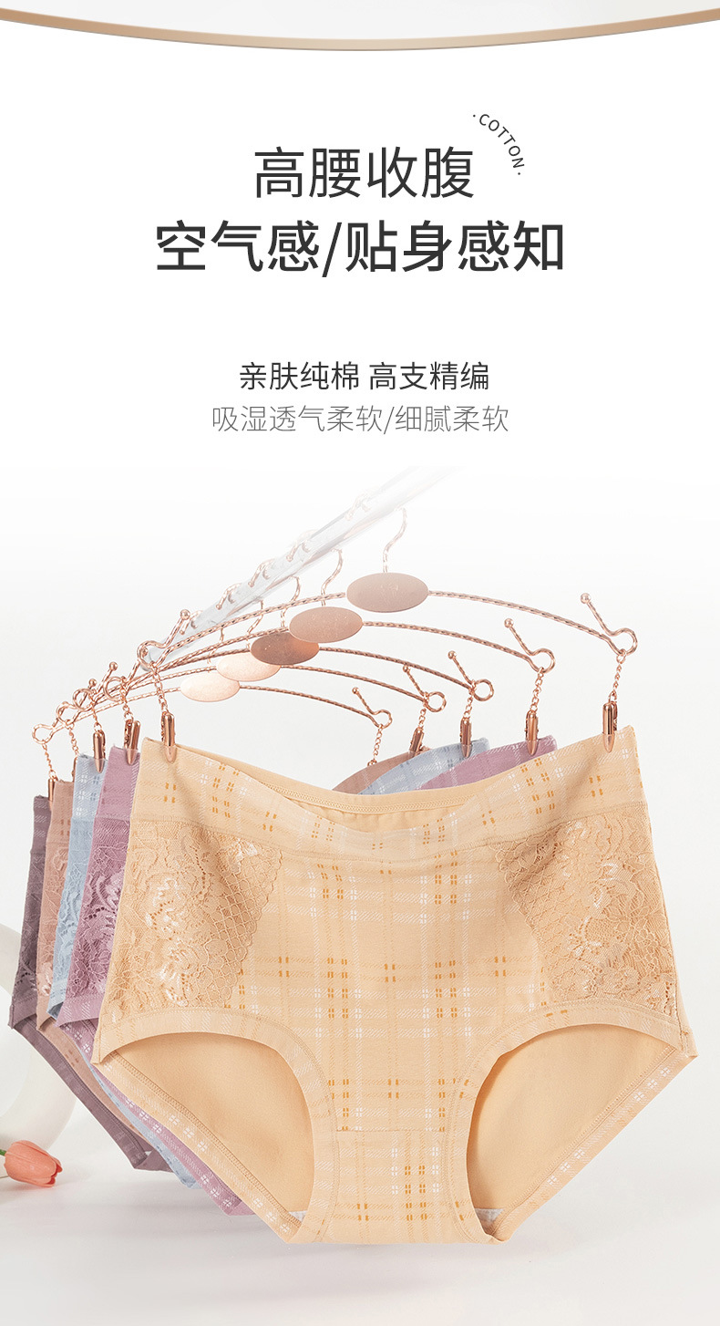 여성용 하이 웨이스트 배꼽 삼각형 반바지 통기성 수분 흡수 정균 바닥 가랑이 가방 엉덩이 높은 탄성 원활한 레이스 스티칭 속옷