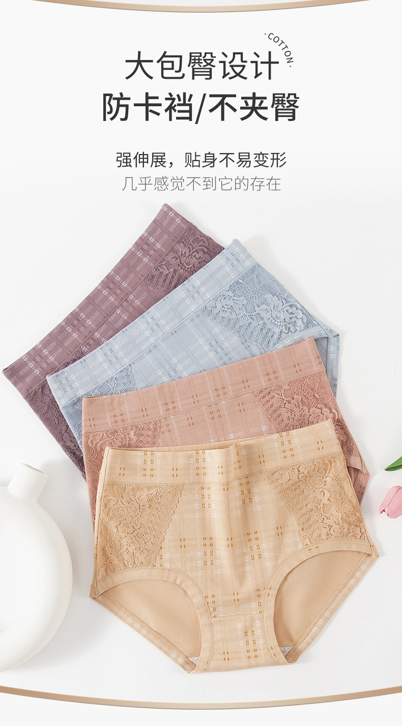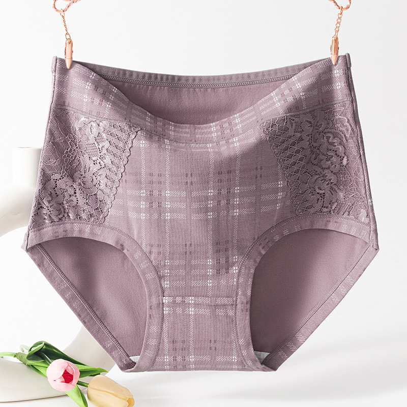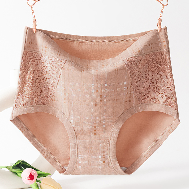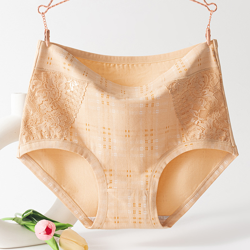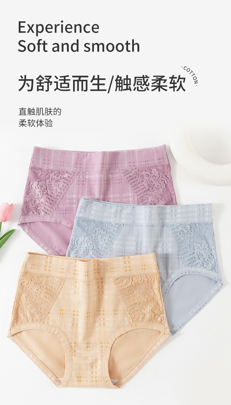 여성용 하이 웨이스트 배꼽 삼각형 반바지 통기성 수분 흡수 정균 바닥 가랑이 가방 엉덩이 높은 탄성 원활한 레이스 스티칭 속옷