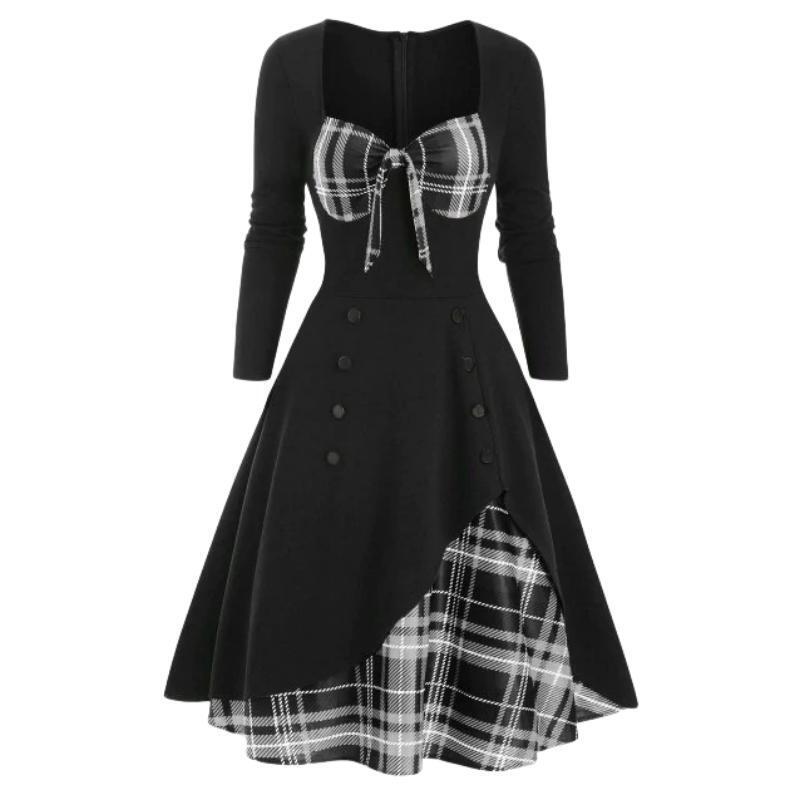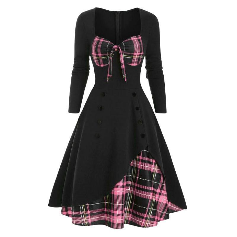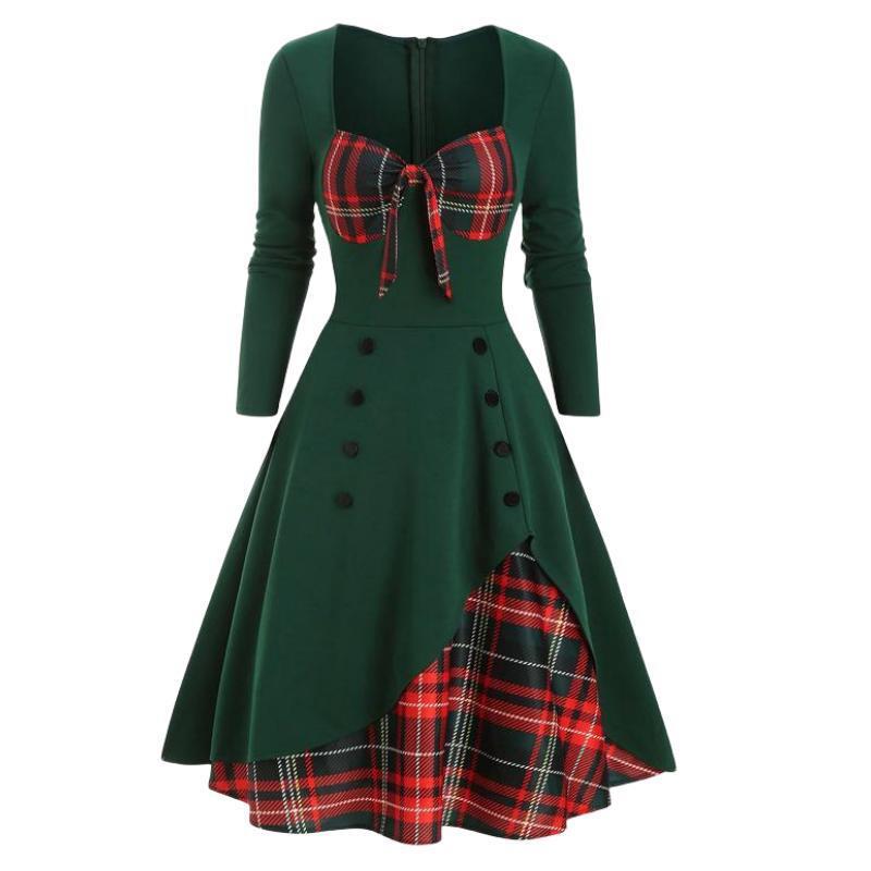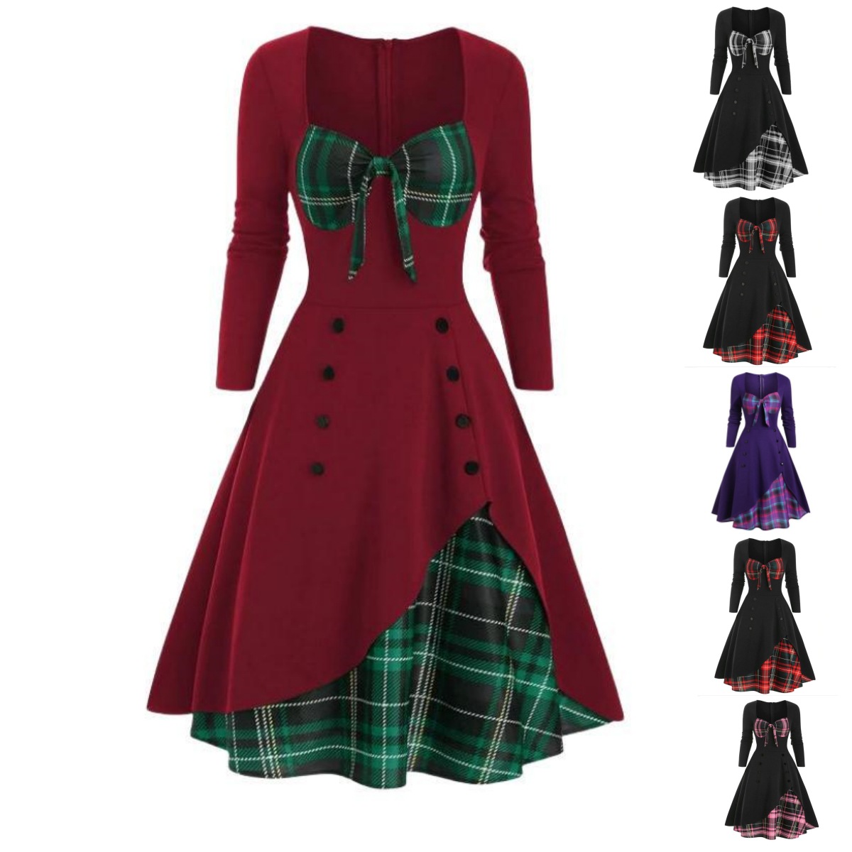 가을과 겨울 2023 대외 무역 유럽과 미국 아마존 여성의 긴 소매 컬러 스티치 더블 브레스트 대형 진자 원피스 크로스 보더스토어 가기