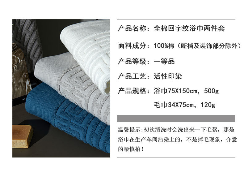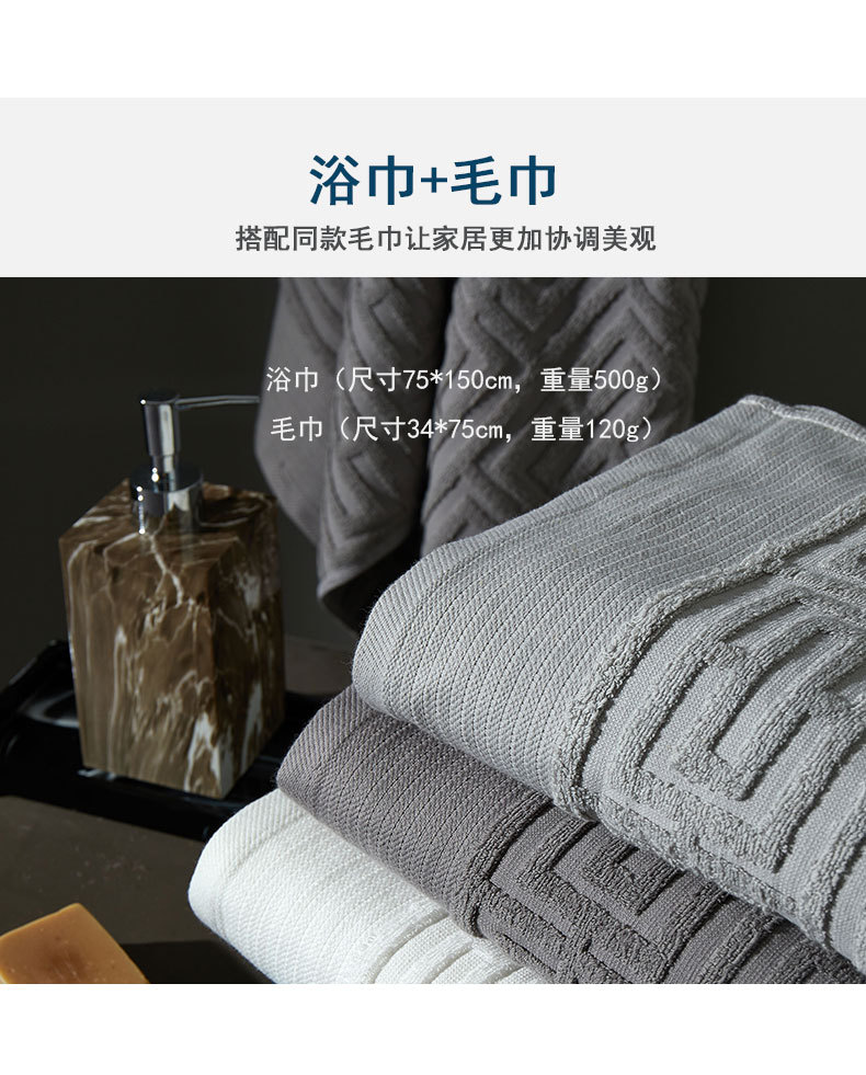 • 2 종 세트: 목욕 타월 75*150cm 500g + 수건 34*75cm 120g