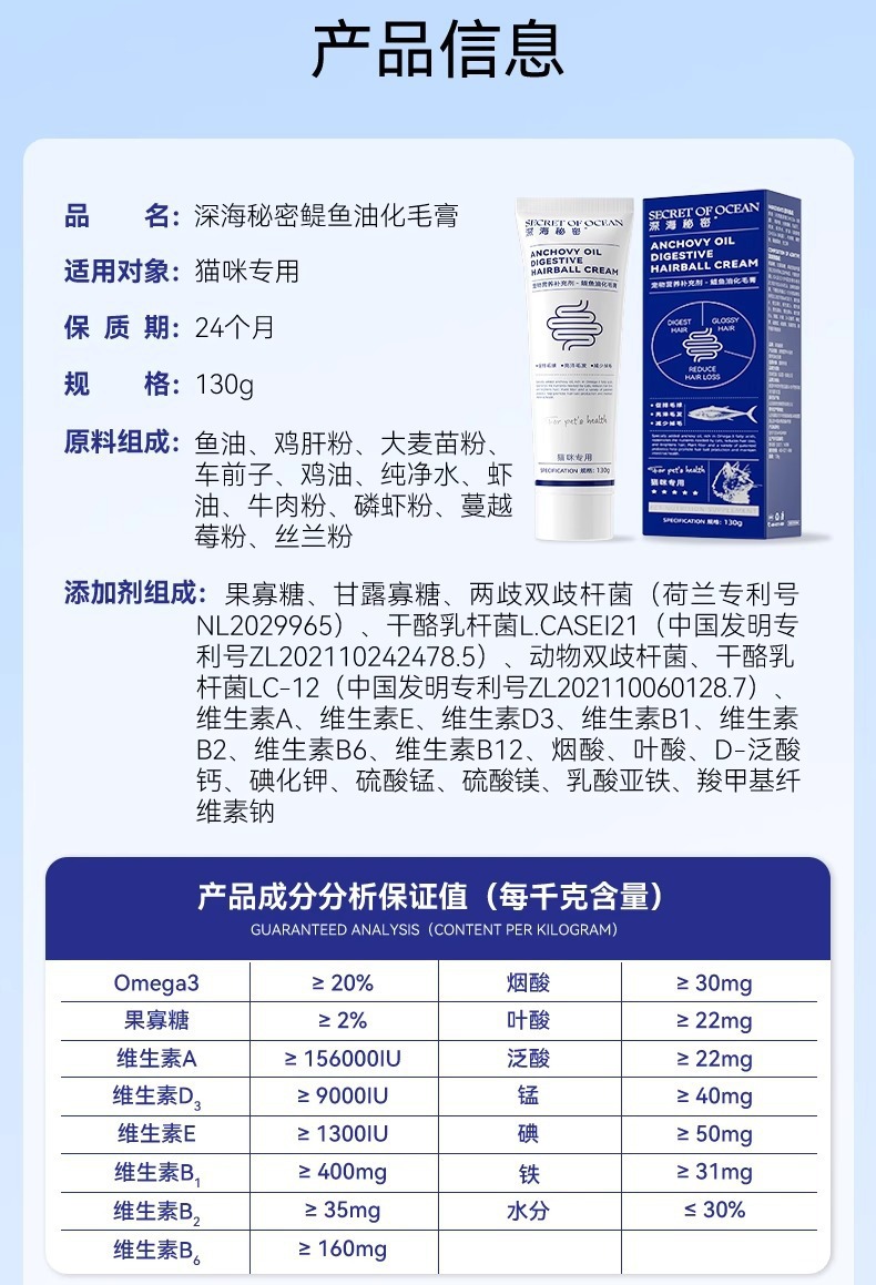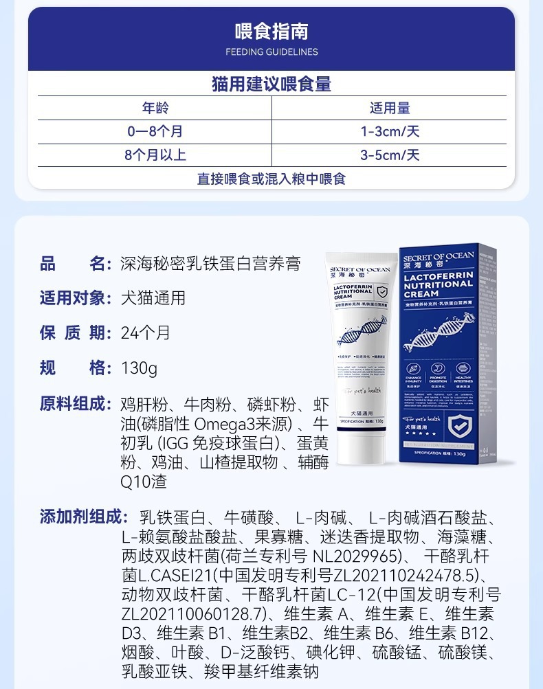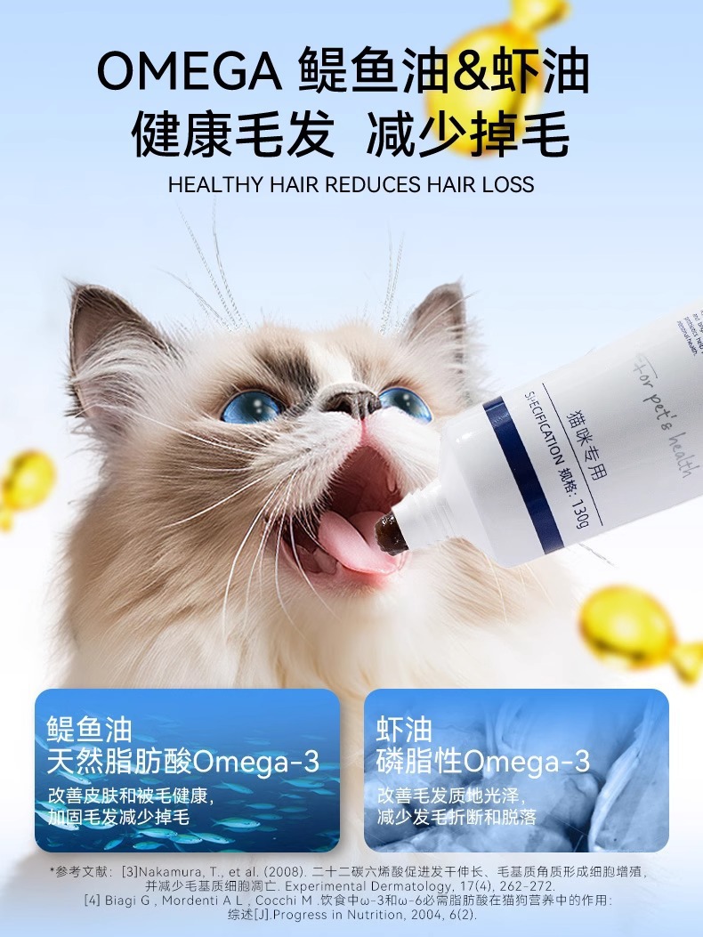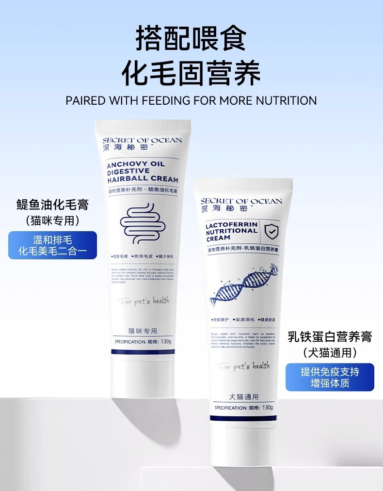 고양이를위한 깊은 바다 비밀 헤어 크림 고양이를위한 특별한 생선 기름 애완 동물 고양이 머리 락토페린 영양 크림