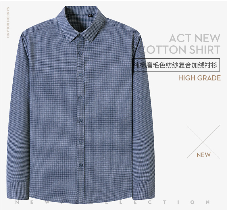 [원피스 벨벳] 겨울 코튼 샌딩 하운즈투스 종합 셔츠 남성 비즈니스 캐주얼 따뜻한 긴팔 셔츠스토어 가기