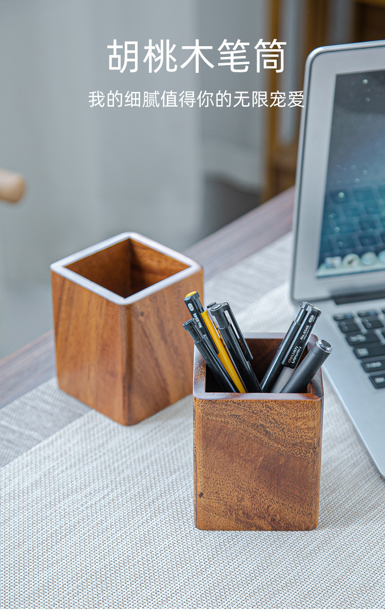 호두나무 펜 홀더 창의적인 원목 데스크탑 수납함 고급스러운 원목 펜 홀더 나무 펜 케이스 고급스러운 라이트 럭셔리스토어 가기