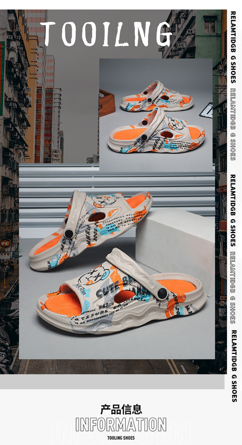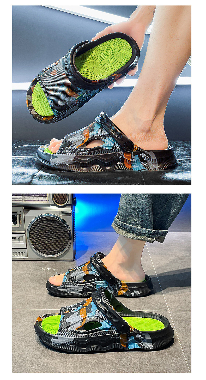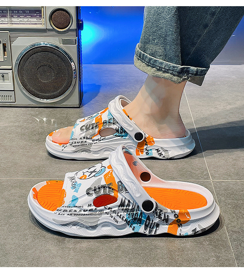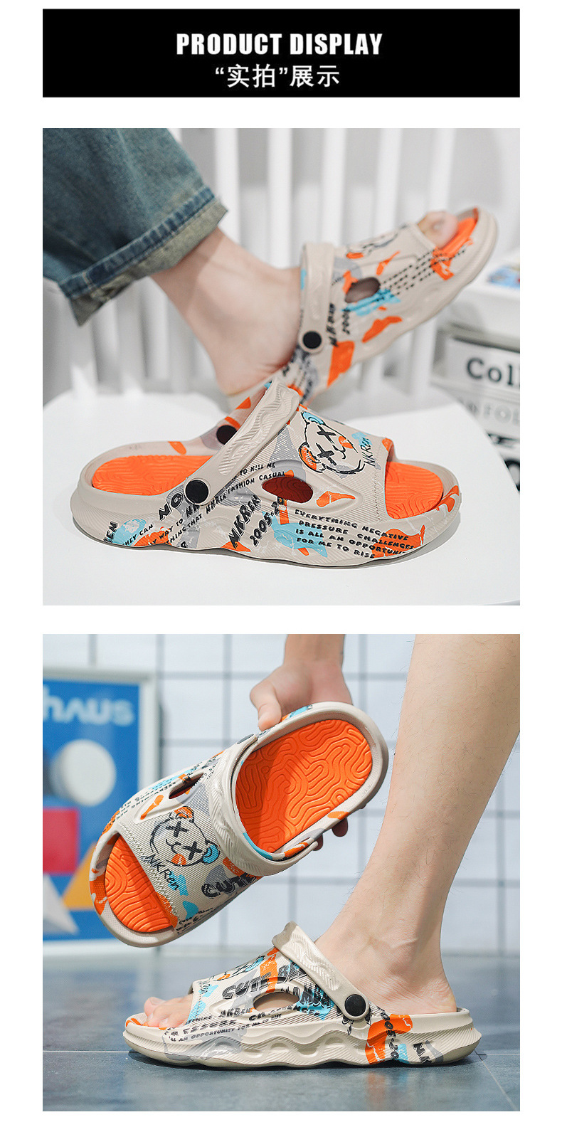 여름 이중 사용 두꺼운 바닥 슬라이드 슬리퍼 남성용 트렌디한 아우터 내마모성 미끄럼 방지 슬리퍼 젠트 느낌 캐주얼 비치 샌들