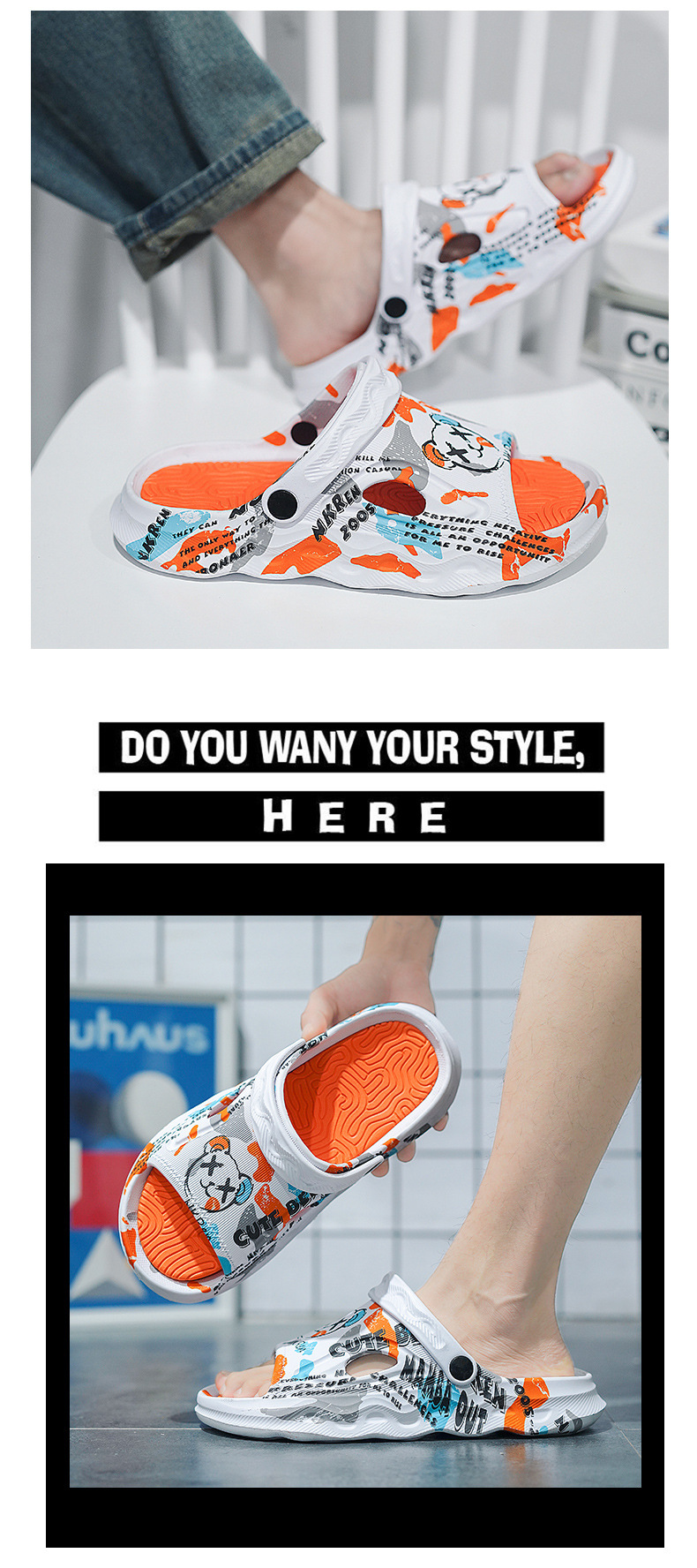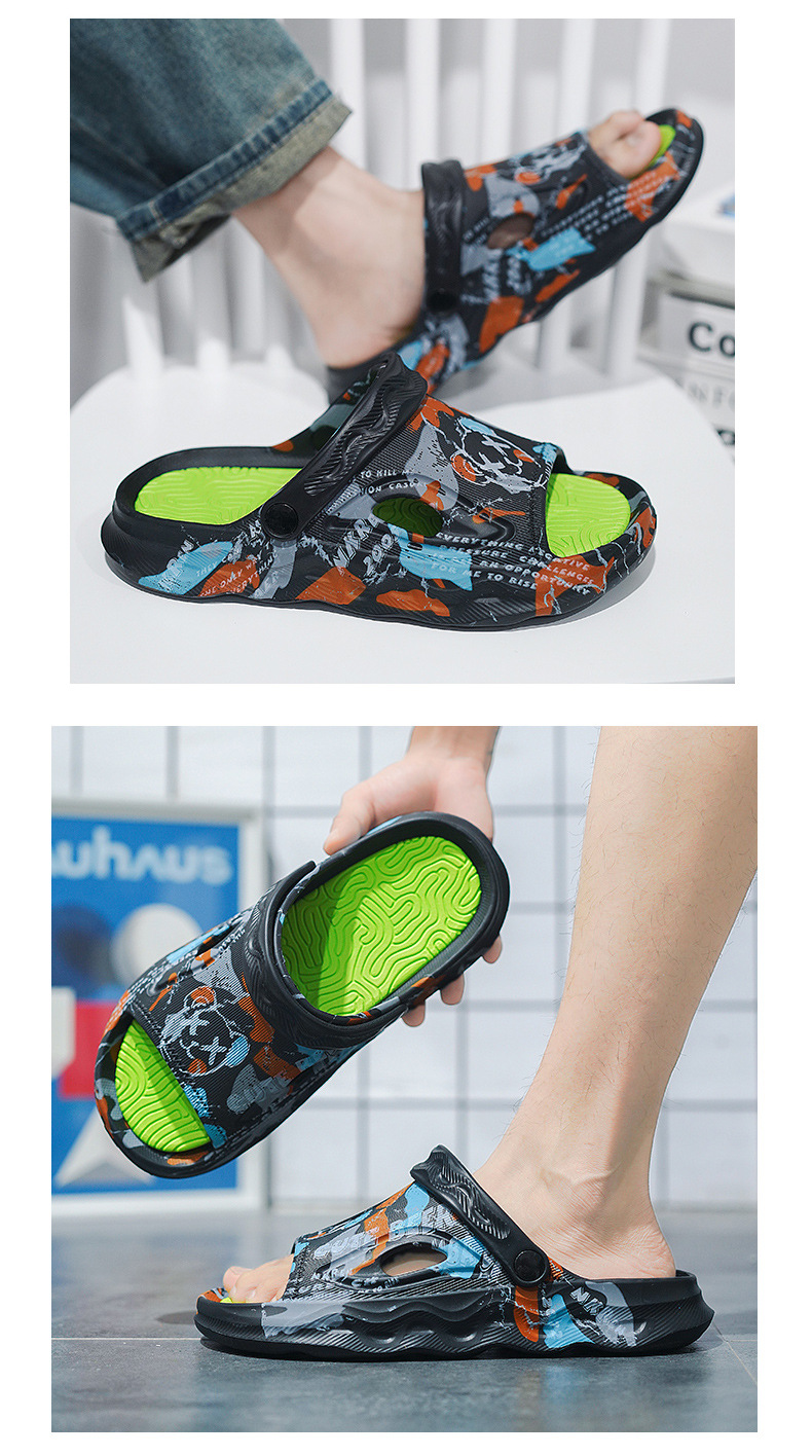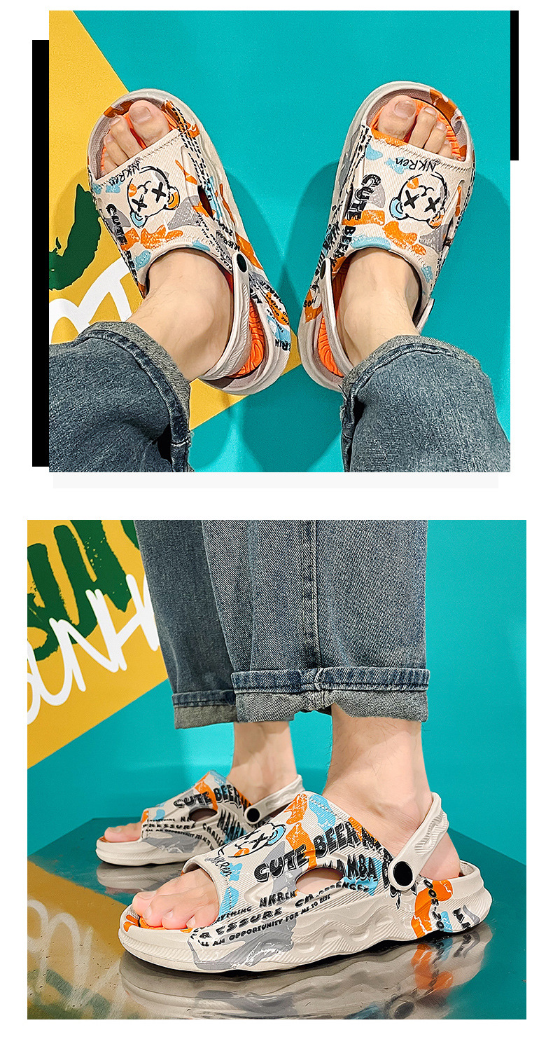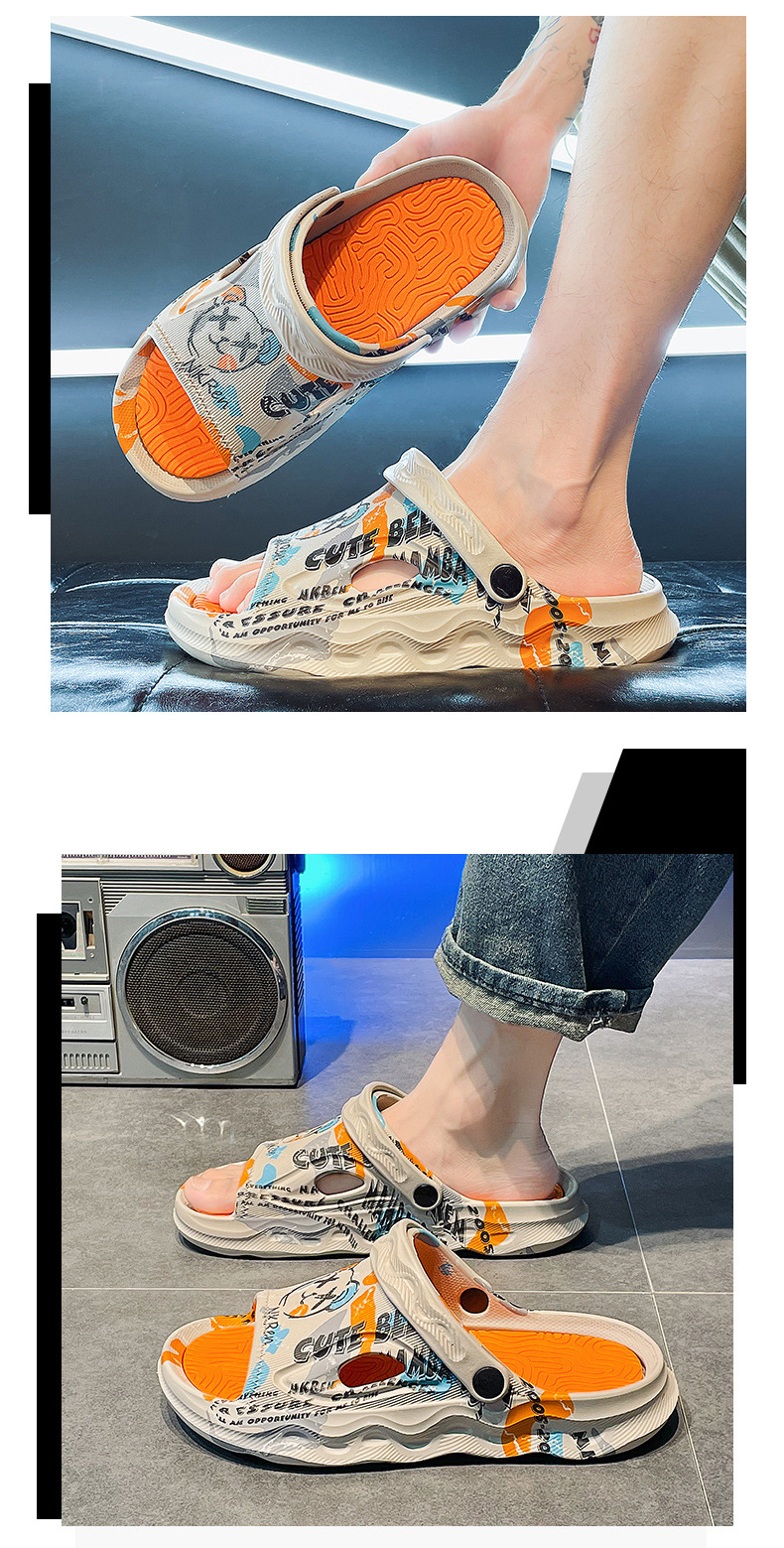 여름 이중 사용 두꺼운 바닥 슬라이드 슬리퍼 남성용 트렌디한 아우터 내마모성 미끄럼 방지 슬리퍼 젠트 느낌 캐주얼 비치 샌들