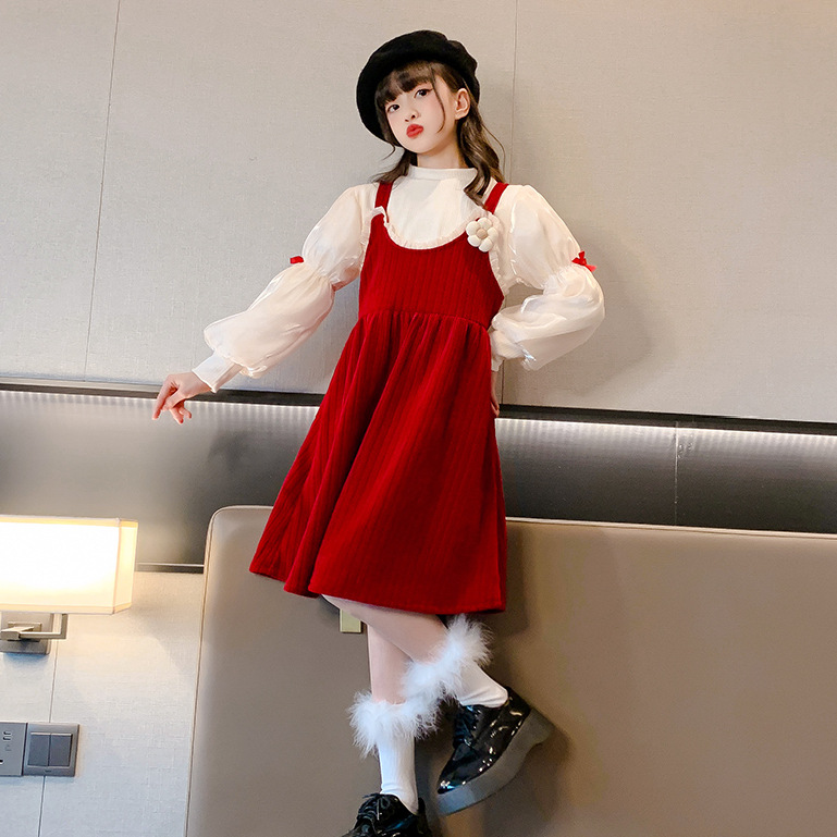 패션 골드 벨벳 소녀 원피스 2023 가을과 겨울 세련된 공주 원피스 어린 소녀의 원피스 투피스 세트 패션스토어 가기